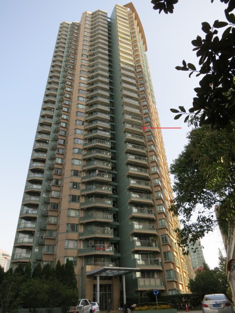 Först ut är huset vi bor i. 15:e våningen på hissknappen ligger 12 våningar över markplanet. Alla våningar med en 4:a i, eller 13, finns aldrig. 4 låter som ”död” på kinesiska, så alla 4, 14, 24, 34 etc är borttagna.