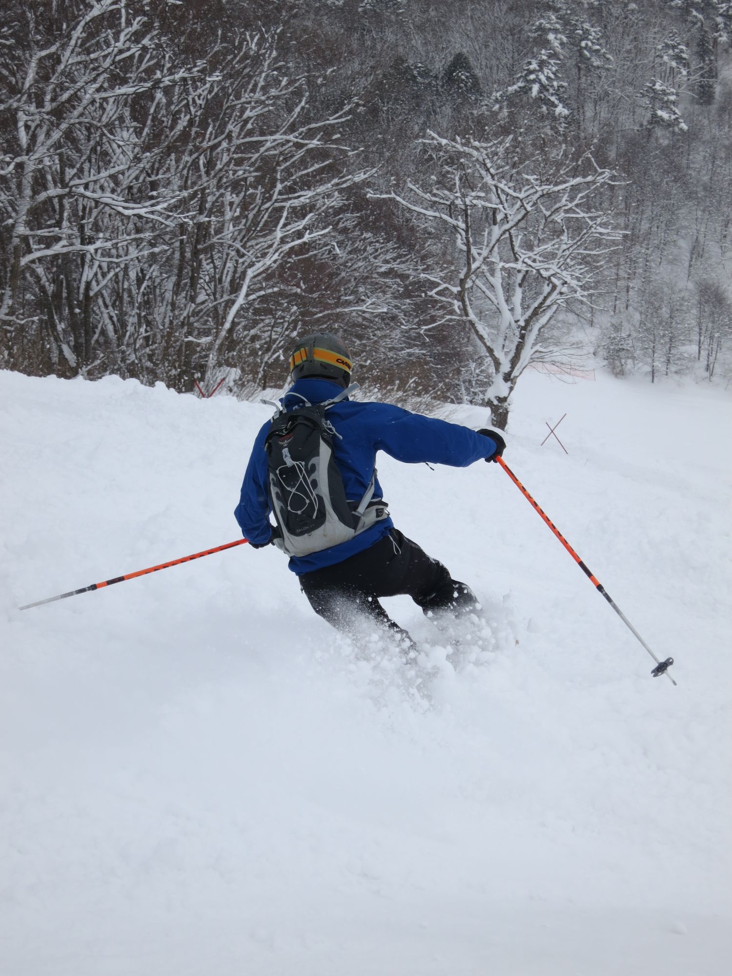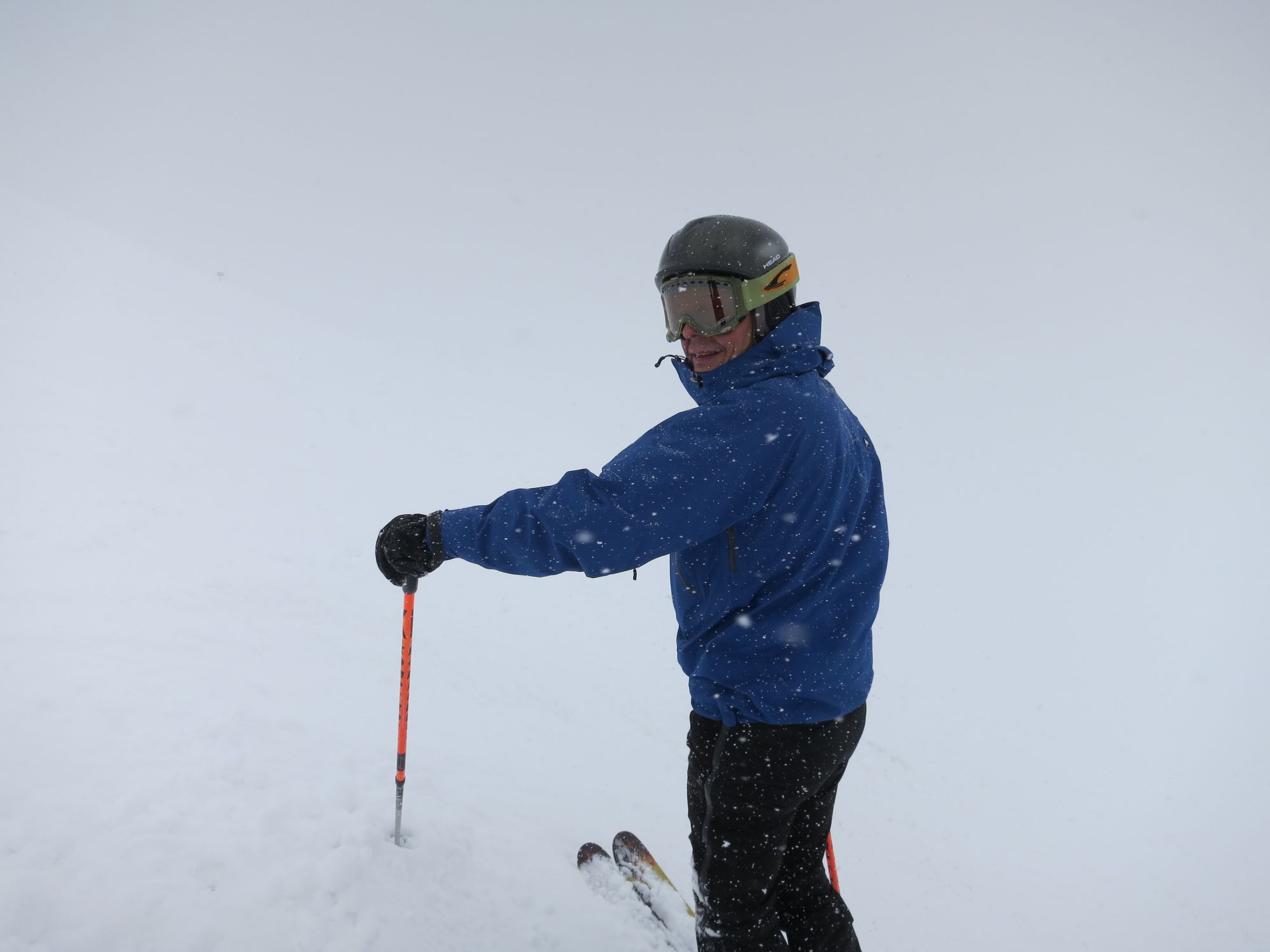 Vi hade nog lyckats få med oss det mesta i vinterväg i flyttlasset hemifrån. Kanske inte alla mest speciella skidgrejorna som man inte kan använda till något annat, som ryggsäck med ryggskydd, spade, lavinsond och sånt. Men planen är ju mest bara mysåkning ändå. Idag var det lagom mysigt, snöade inatt när vi kom så det var faktiskt ganska fluffigt på många ställen i backarna, men… tjocka, dimma! Ett tag såg man inte mer än kanske 20-30 meter, ner kommer man ju alltid heter det, men faktiskt vill man ju att det ska vara ner på rätt ställe så att det stämmer med bussen tillbaka till hotellet också… Hoppas på bättre sikt imorgon!