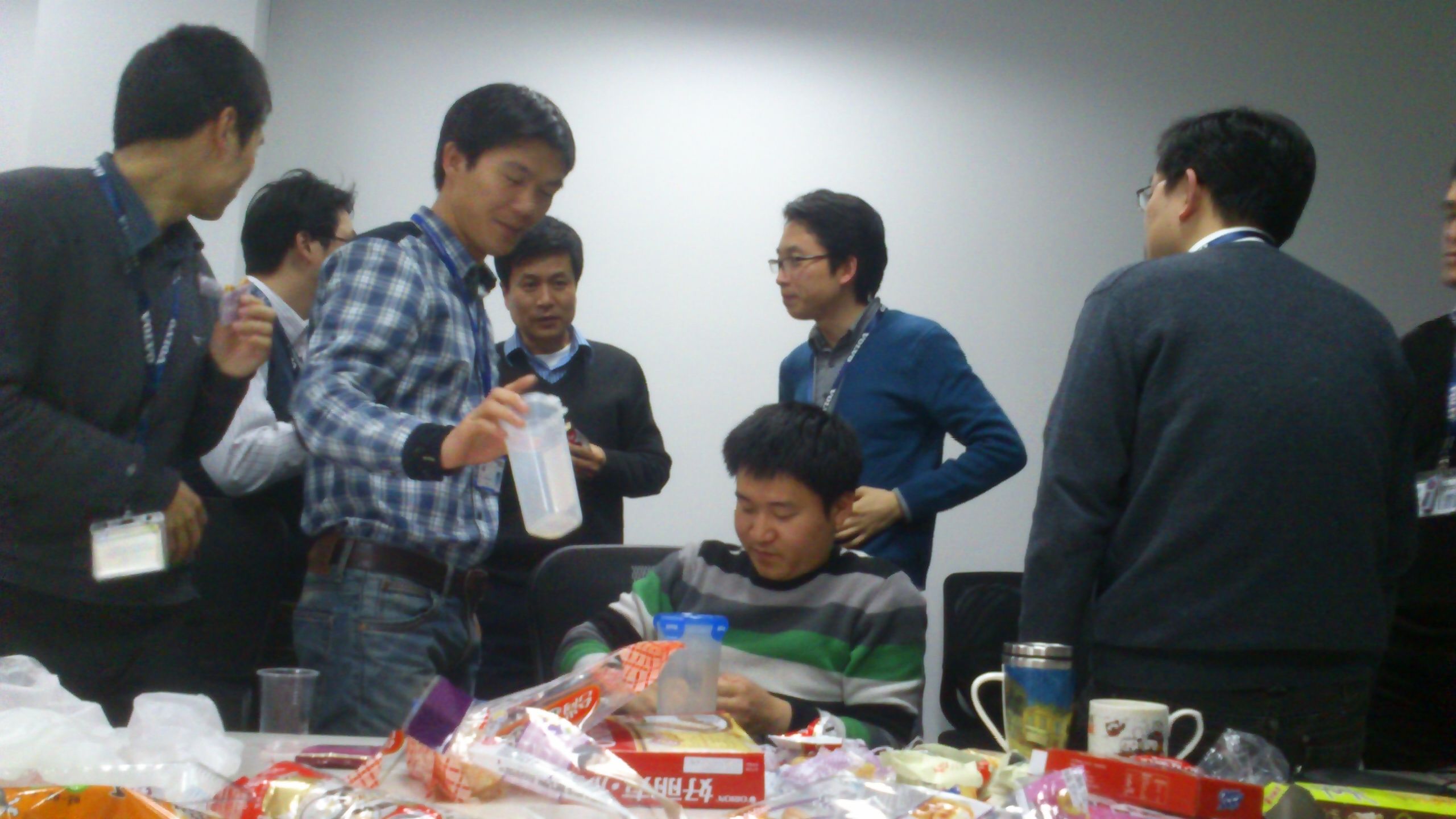En ögonblicksbild från en Friday Fika, mycket chips, nötter, kakor, minipannkakor, … och ett härligt kackel!
