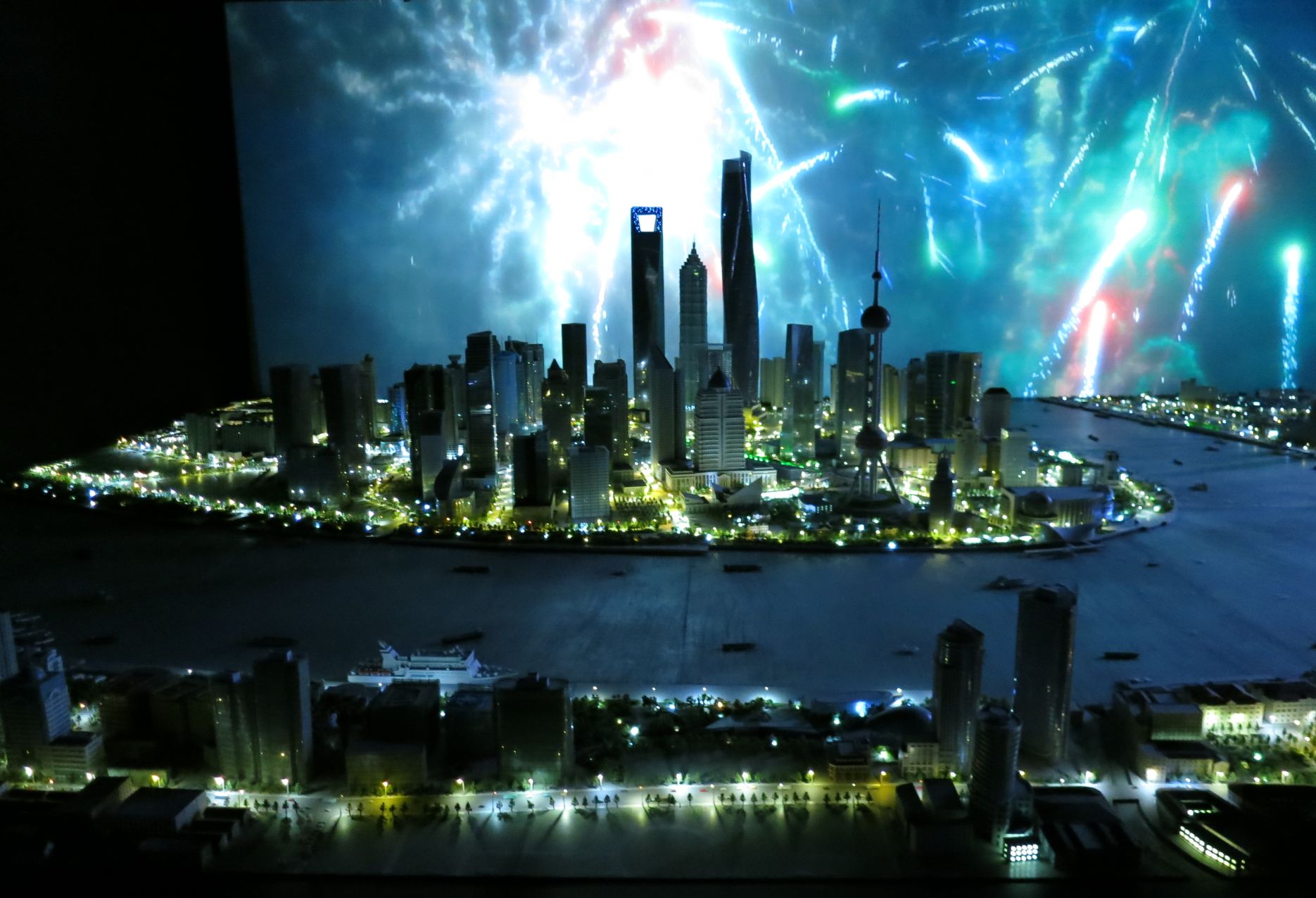 Modell av staden, med det ännu högre Shanghai Tower under byggnation, färdigt 2014.