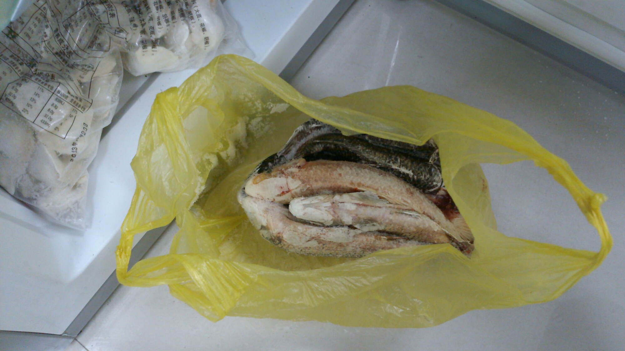 Hela frysen är späckad med djupfrysta dumplings av ett och samma fabrikat. Lämnar absolut ingen plats över för någon annan, eller något annat… än 6 st lika djupfrysta och råa fiskar. Inte sååå sannolikt att någon mumsar i sig till lunch?