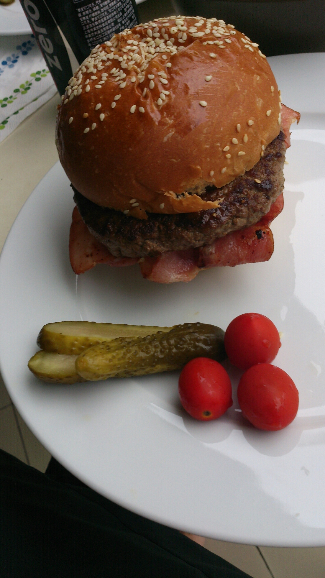 Det fick bli hemmaburgare, men fegisarna stekte inte bacon med bar överkropp den här gången heller!