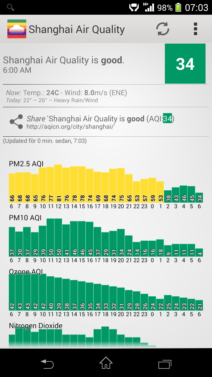 Tyfonen blev kanske inte värre än ett väldigt långvarigt och blött regn, och en del vindpustar, i Shanghai? Hoppas. Just nu på morgonen är luftkvaliteten tillåmed på ”grönt”! Morgonens lilla joggingrunda krävde dock urvridning av alla kläder, hade inte varit blötare om jag hade simmat i Huangpu-floden…