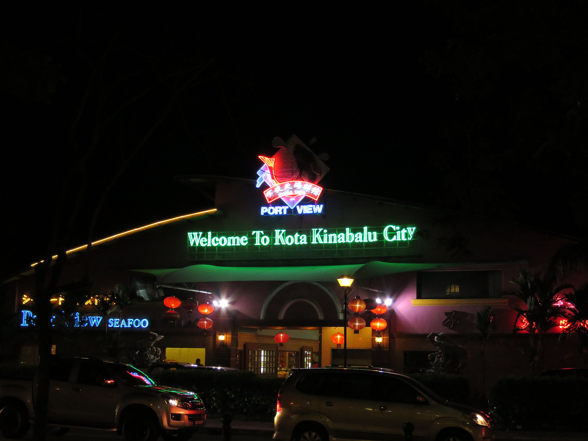 Mot Borneo! Juldagen var i stort sett bara en enda lång resdag, från Shanghai till Kota Kinabalu via Kuala Lumpur. Lika fantastiskt och smidigt som alla gånger tidigare, som avtalat står det en person och möter och kör oss till hotellet. Klockan är 21 på kvällen när vi landar, och en halvtimme senare är vi incheckade. Skönt att ta en promenad och sträcka på benen bara.
