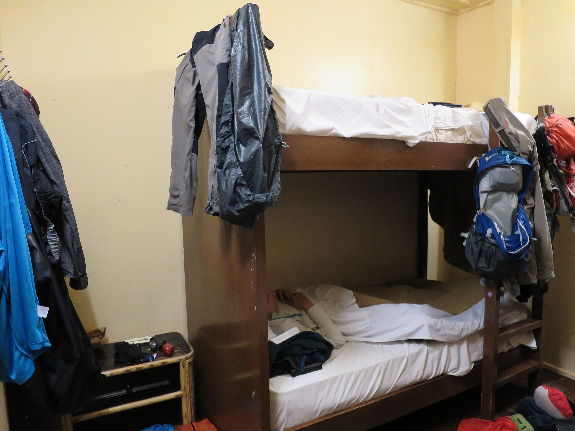 Torkning är det inte tal om, men en liten vädring och några timmar sömn i alla fall. Kl 0730 kommer våra rumskompisar hem, de har inte heller kommit upp på toppen. Facit blev att ingen gjorde det, denna natt.
