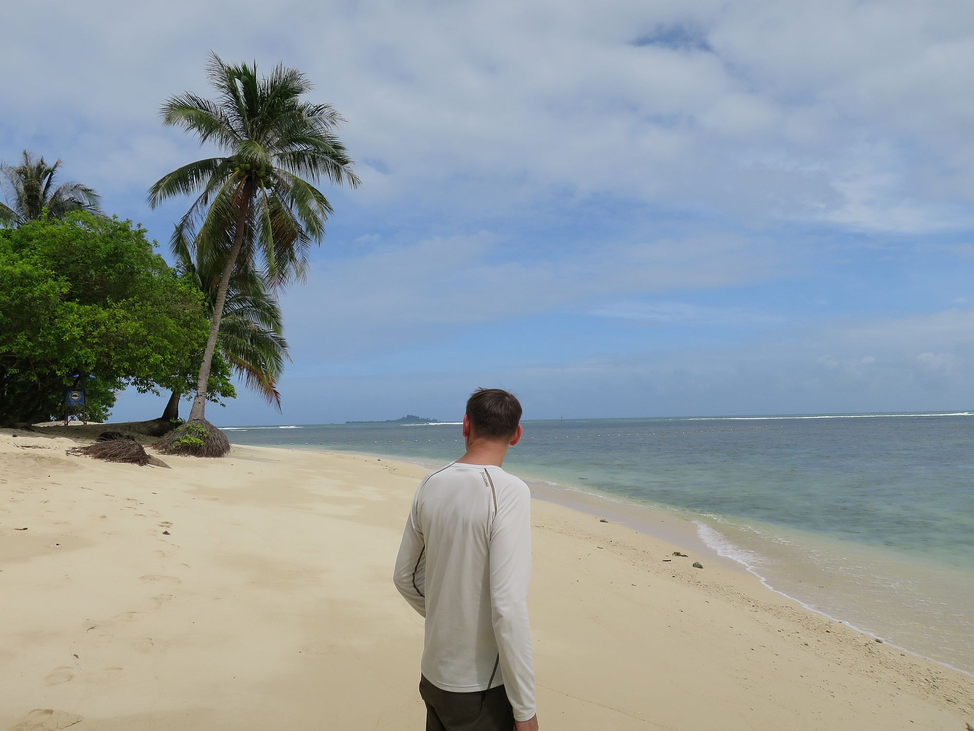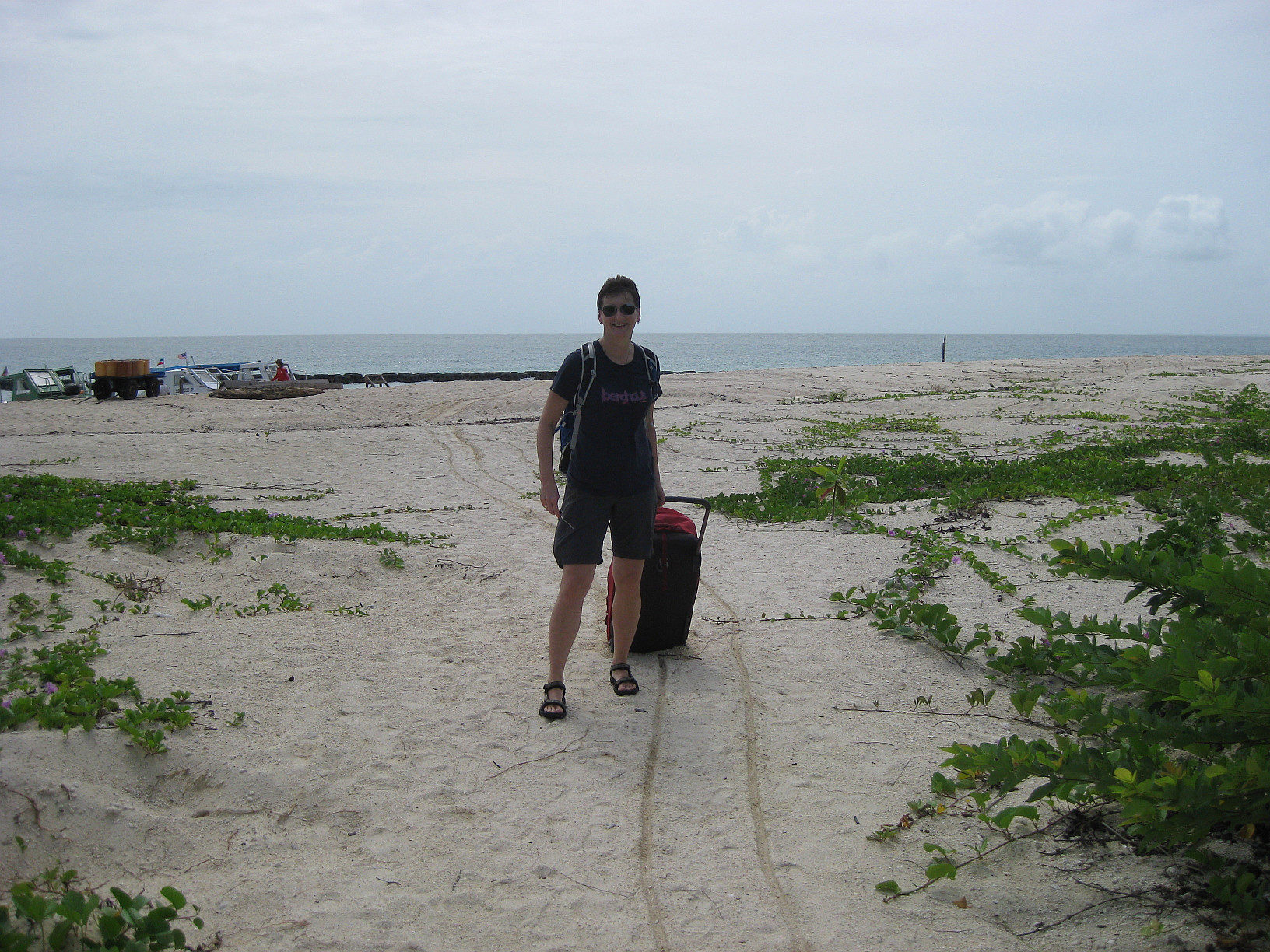 Speedboat ut till ön, ungefär en timmes ganska skumpig resa. Vi har liksom ingen aning om hur mycket man ska ha med sig, så… vi har hela vår packning, helt enkelt, eftersom vi checkade ut från hotellet. Alla andra kommer med bekväma små dagspackningar, hm, hur skulle man veta det? Jaja.