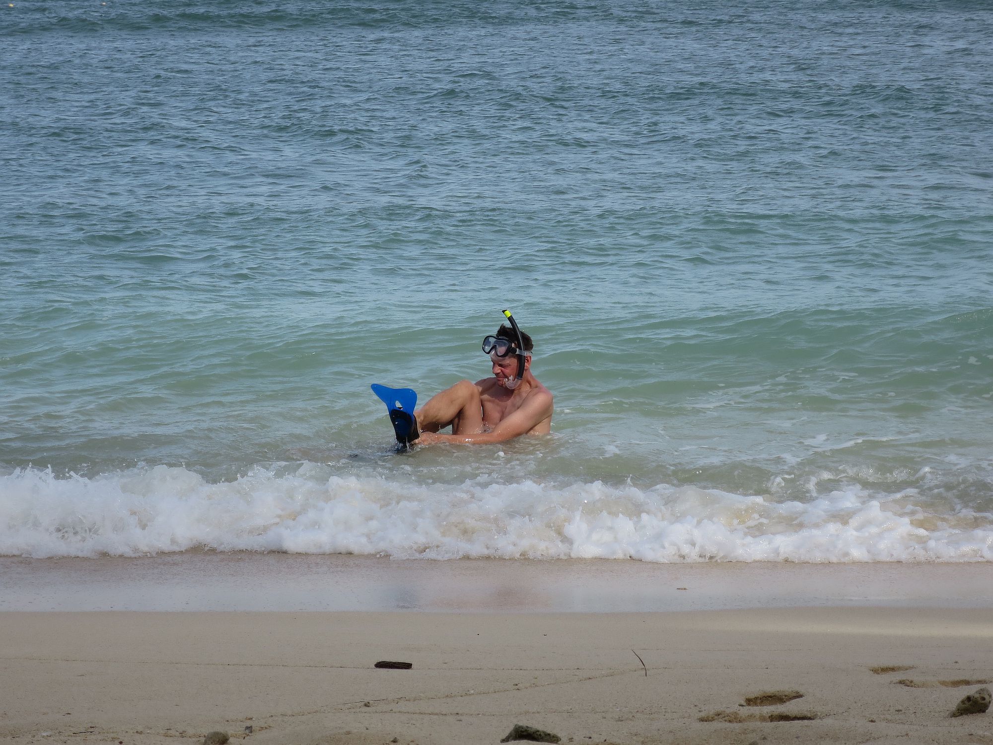 Efter lunch, mer tid för fria aktiviteter. Snorkling t ex. Fram till kl 1730 vaktas stranden av badvakterna, efter kl 18 av ödlorna. En ganska schysst överenskommelse ju!