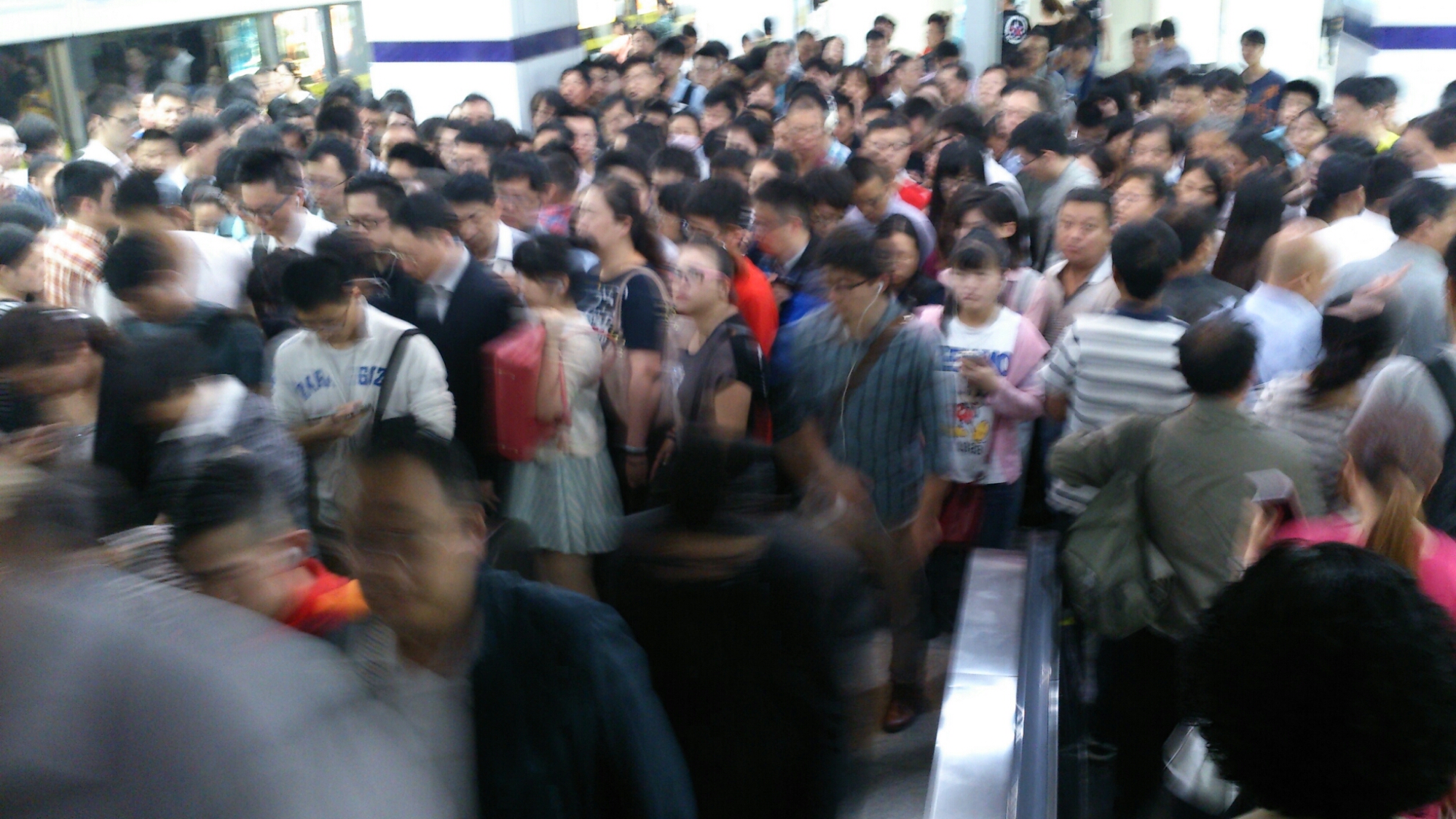Flämt. Morgonrusning i tunnelbanan i en stad på typ 24 miljoner invånare.