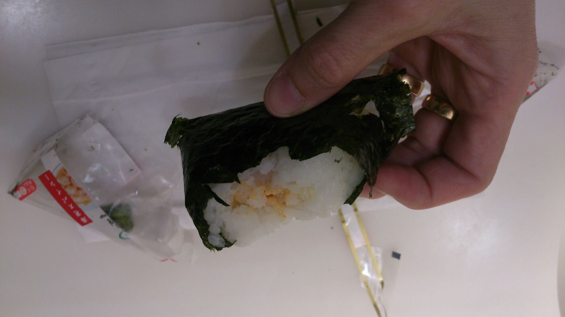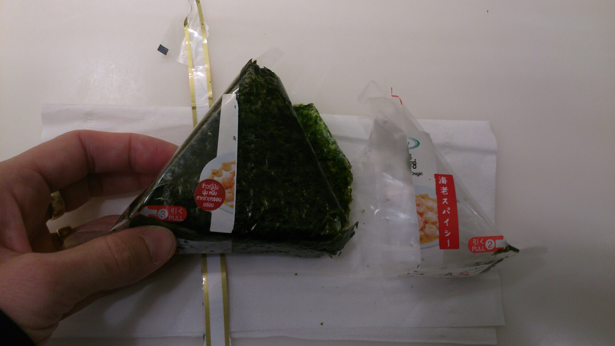 Stora bitar av sushi, i en supersmart förpackning så inte sjögräsomslaget blir klet!