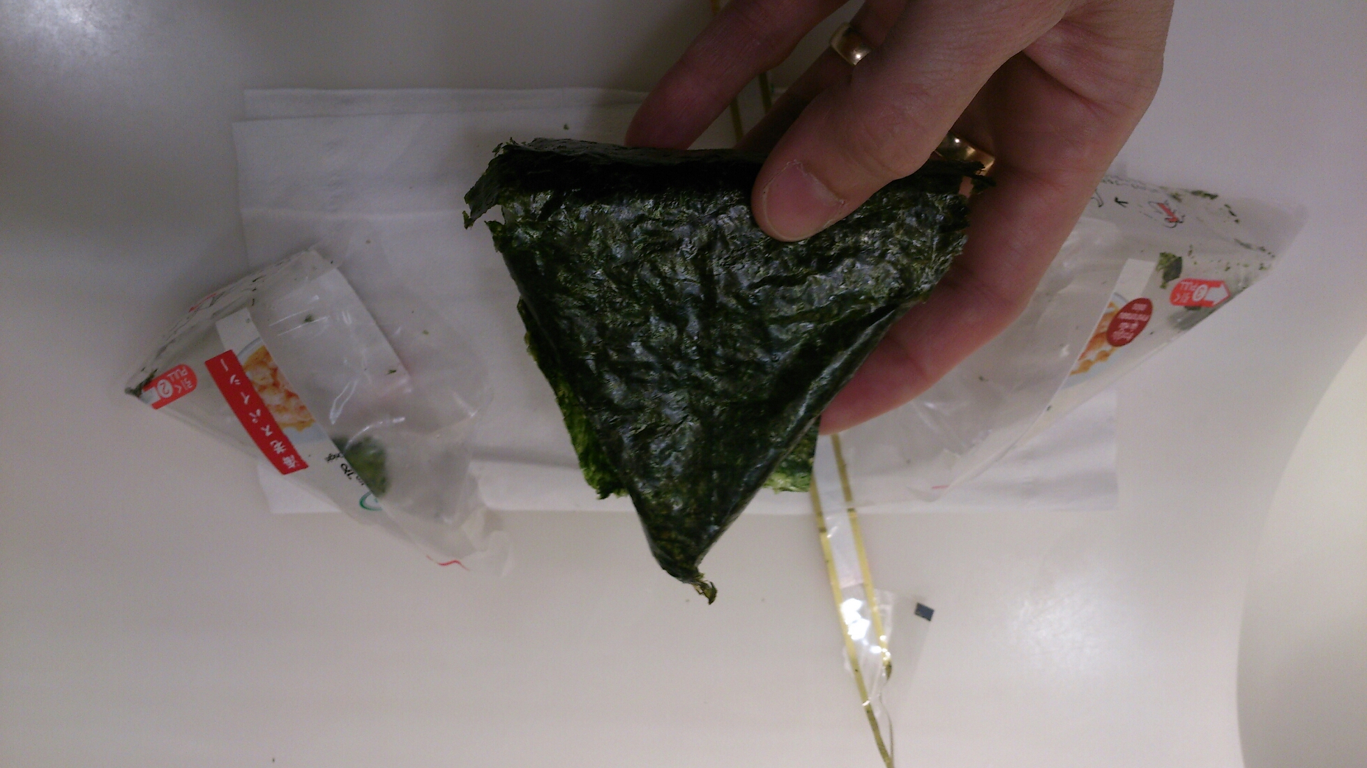 Dra loss plasten på ena sidan, vips bakom dubbla lager plast kommer sjögräsarket fram och fastnar i riset.