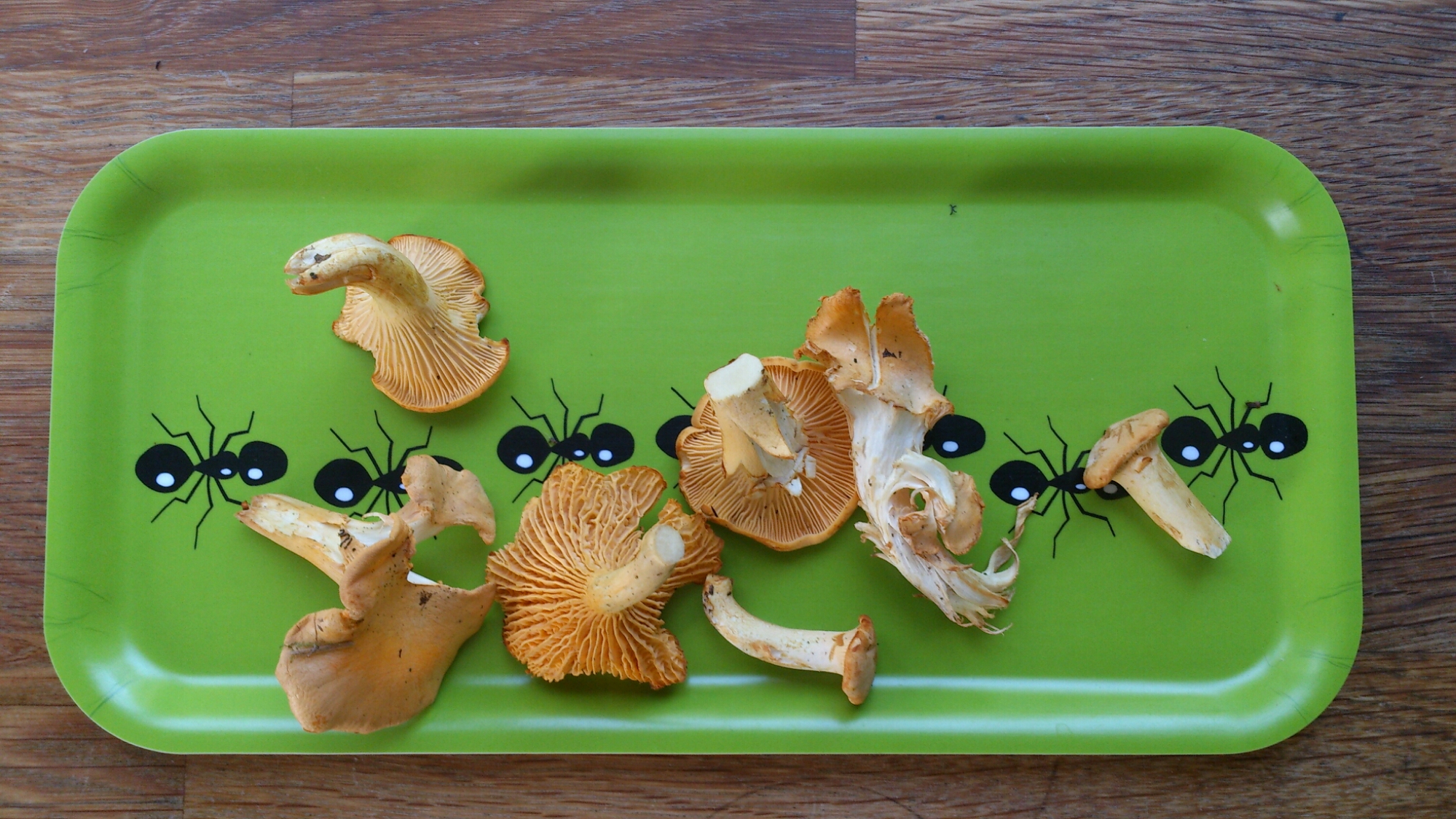 De flesta kantareller man hittar är bara gula löv… Nu är det nog för torrt i skogen, bara några få stackare visade sig.