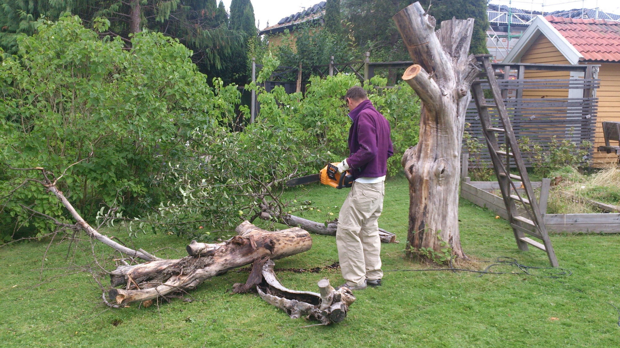 Sen lite klipp och såg, lönn och äppelträd har A klättrat i.