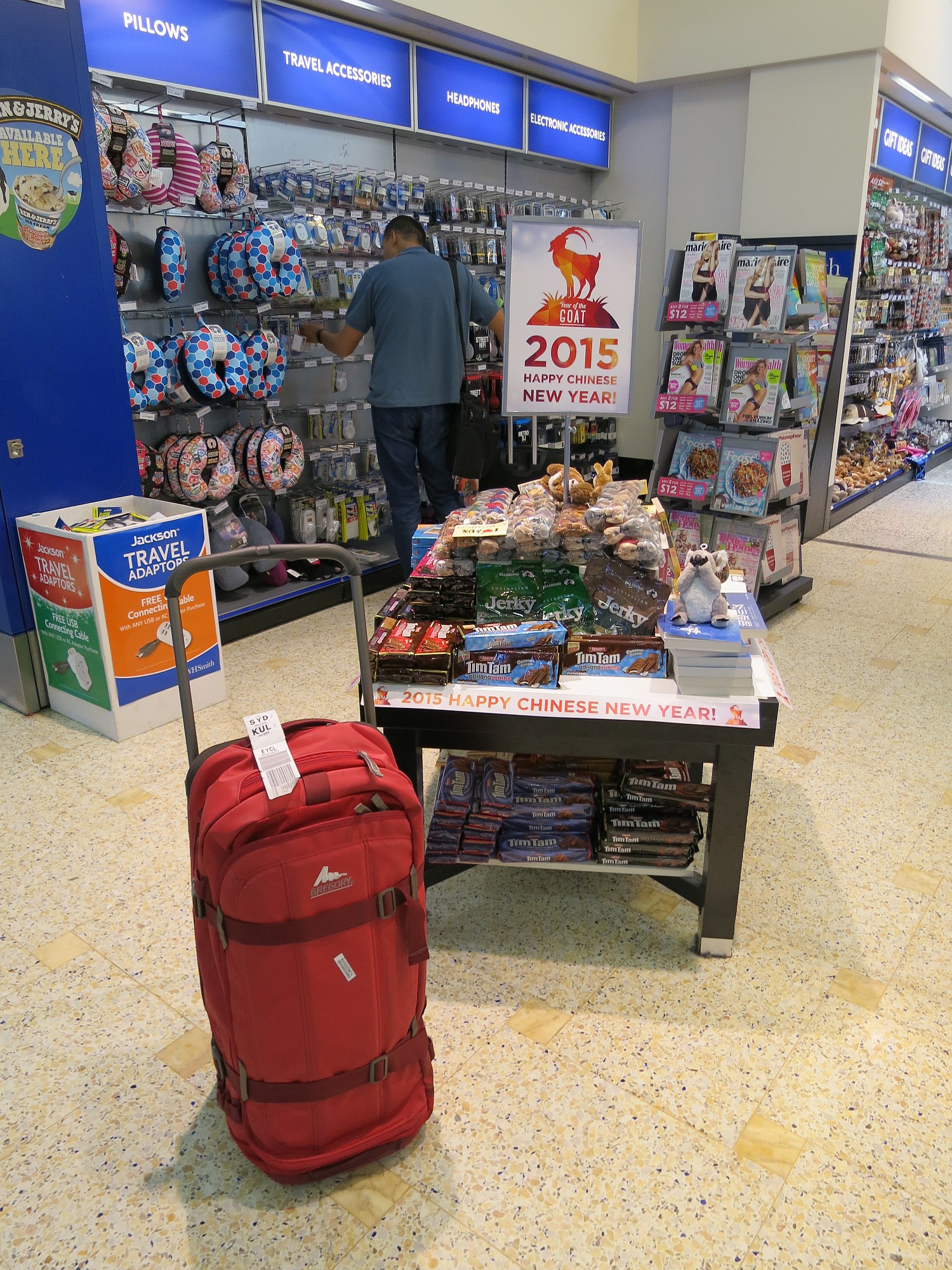 Men väl framme i Sydney var det ju enklare att bara ha en väska att släpa på! Äh, med tanke på dagarna innan resan, så var en väska på rymmen inget som gjorde att pulsen höjdes. Köpte lite nya underkläder och en tröja, orkade inte ens ta reda på möjlig ersättning.