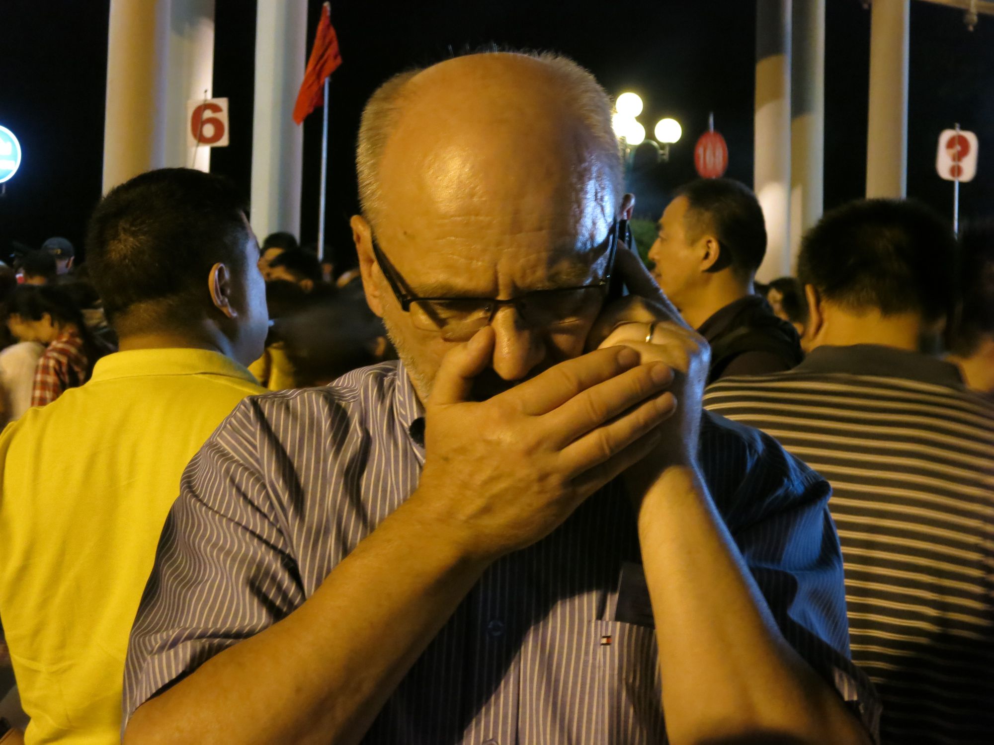 Lite vanligt knök-kaos innan insläppet, följ skylten med 99, och OlKa försöker jobba mot Sverige per mobiltelefon i kaoset: