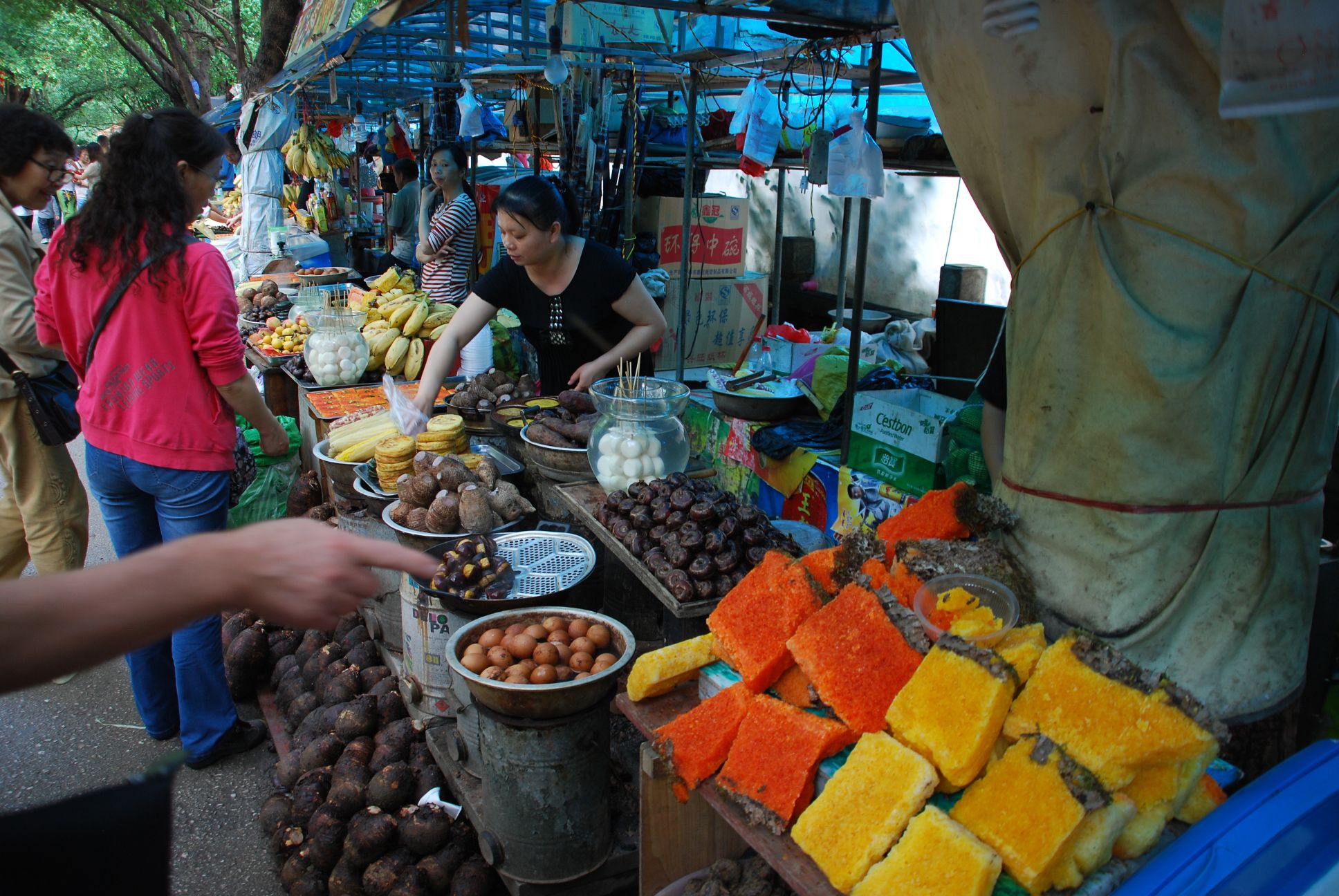 OK, framme med alla armar, ben och skallar intakta. En myllrande och färgglad kommers utanför. Särskilt de stora bitarna med kristalliserad färgglad honung är väl snygga!