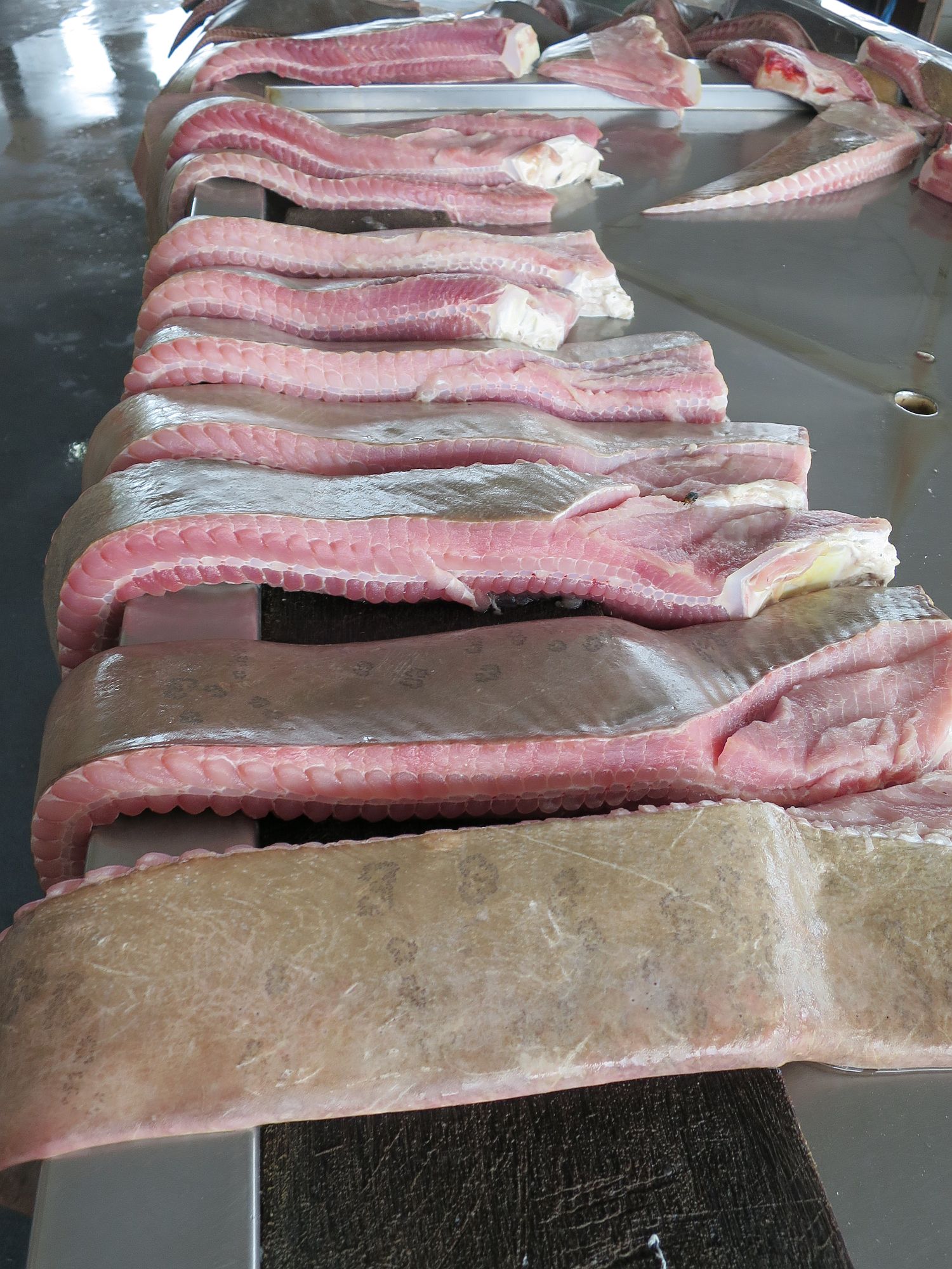 Fina fisken! Från de största rockorna tar man tillvara skinnet mitt på ryggen, och gör t ex fina plånböcker.