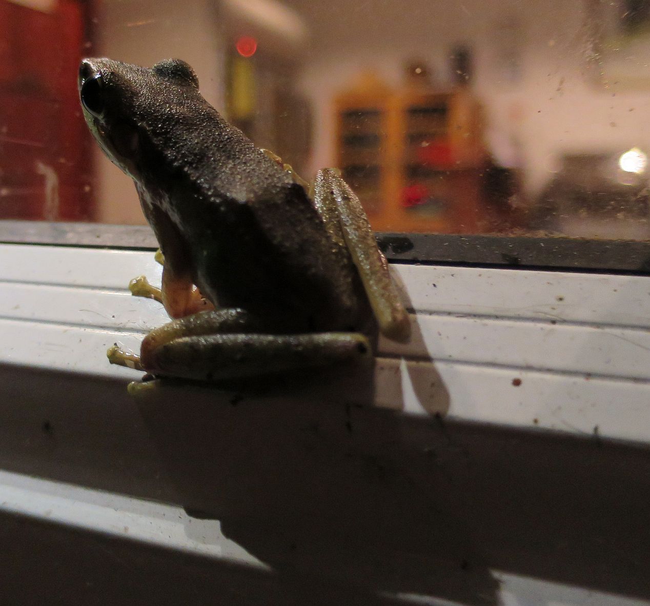 Ödlan ville också vara inne och fira. Grodan verkar ha blivit portad och tittar längtansfullt in.
