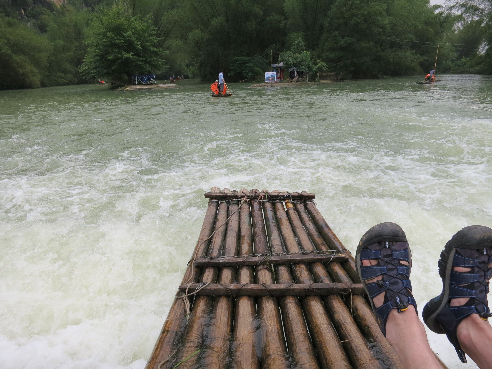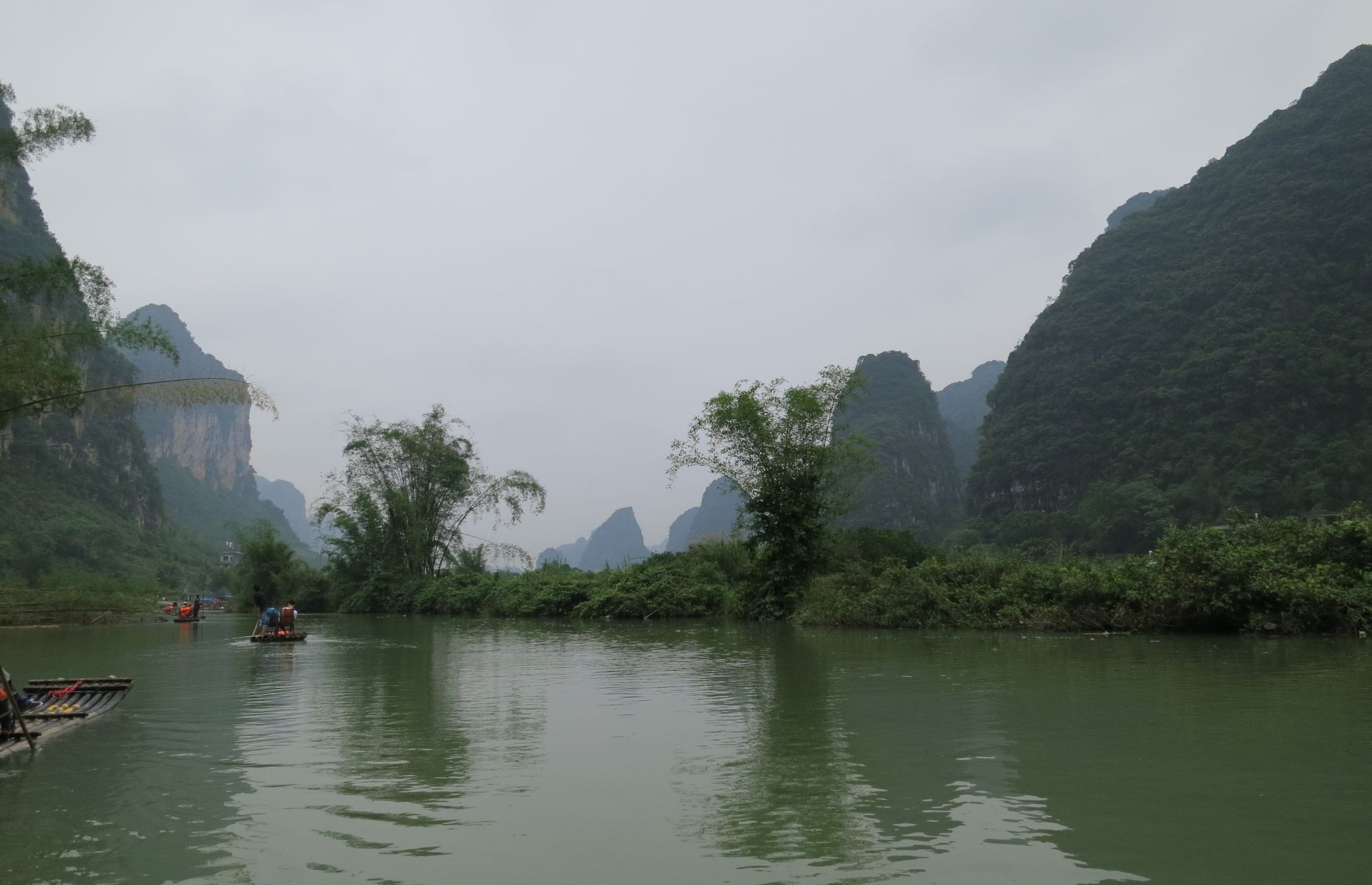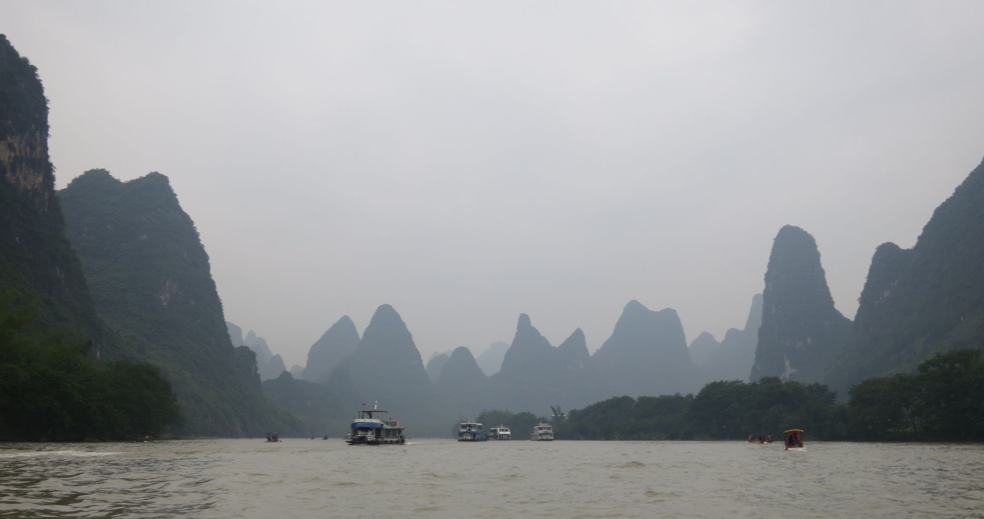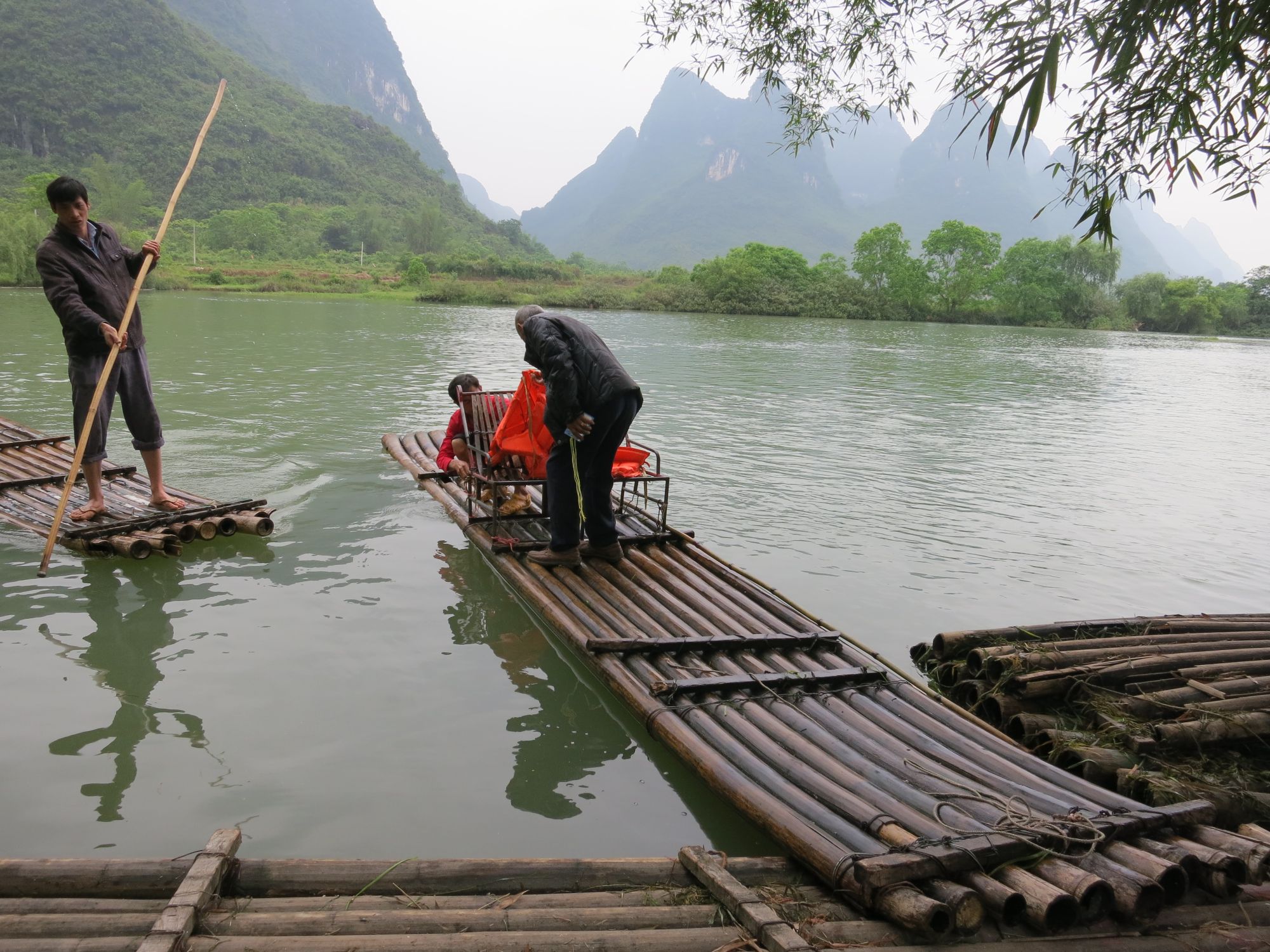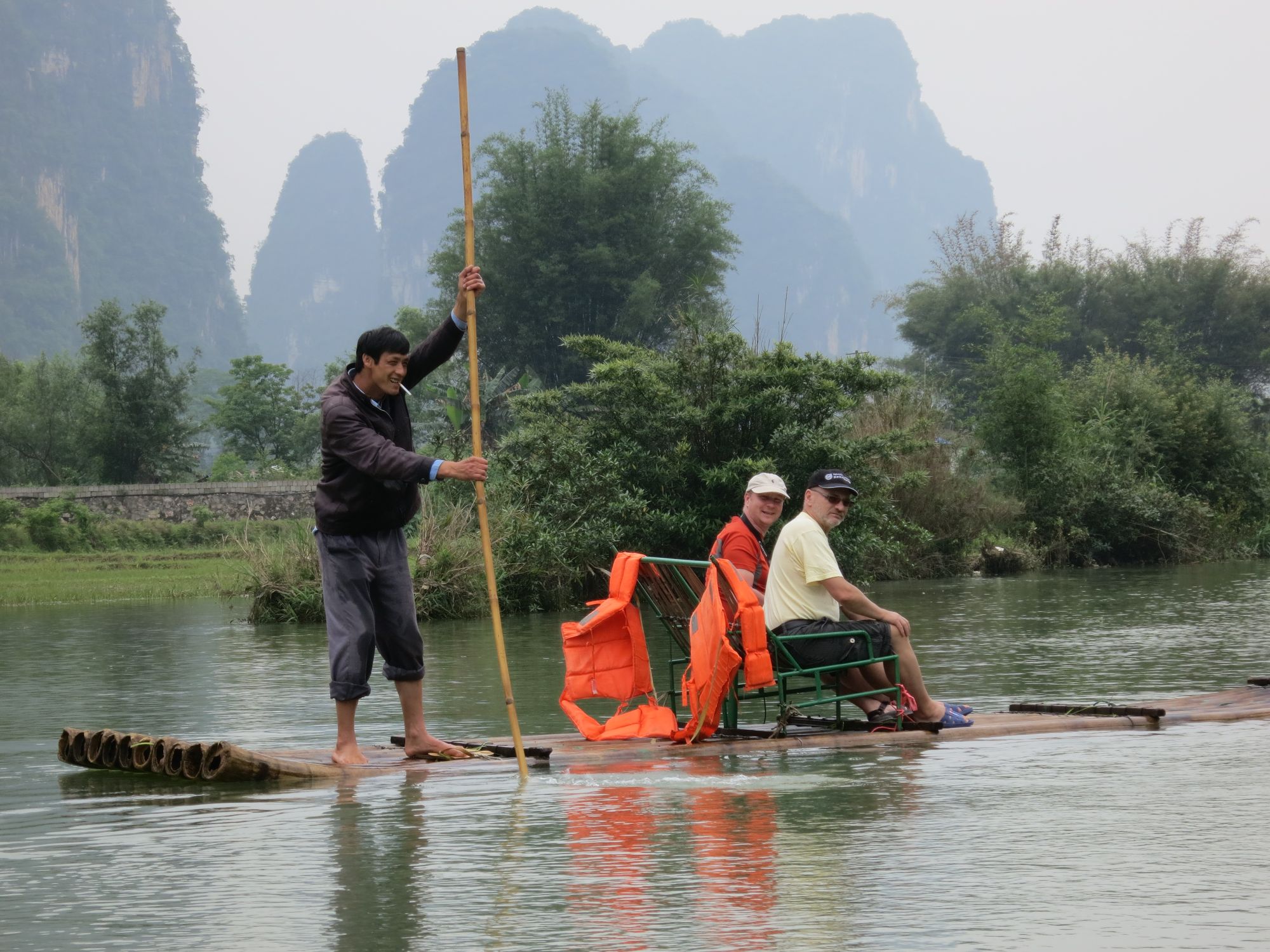 Jahapp, men inte hade vi flottat färdigt för denna dagen. Guiden hade även köpt biljetter till en plastbambumotorflott-färd på floden Li. Det speciella med denna färd är att man åker längs massor av berg såklart, och många med namn efter vad någon tycker att de liknar, och slutligen kommer man fram till platsen som är motivet på baksidan av den kinesiska tjugan, Xingping. En liten stad med ett stort ”gamla stan”-kvarter med hantverk, lokala specialiteter, och vanligt krimskrams förstås.