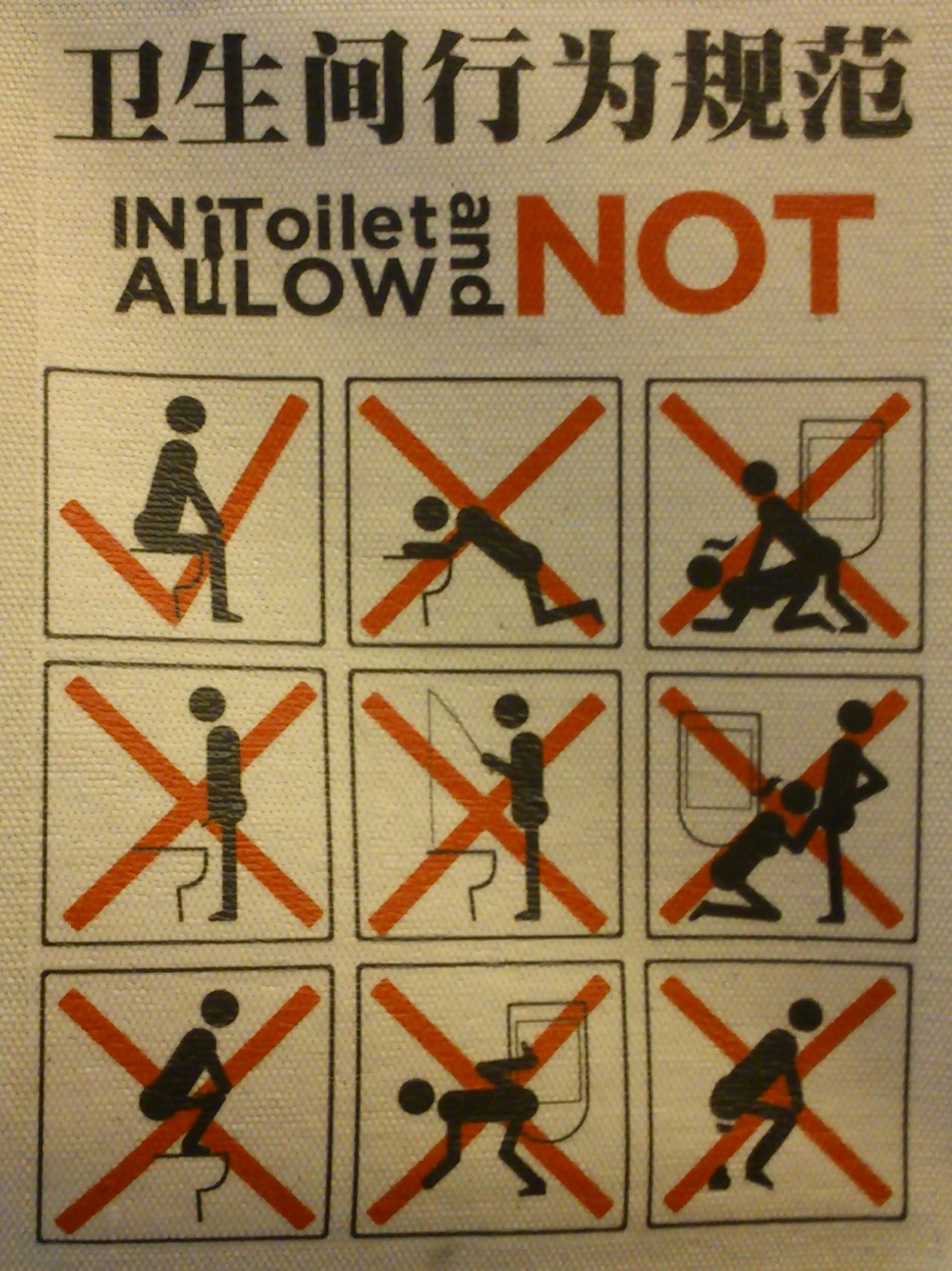 Fint lunchställe om man gillar speciell kinesisk mat tror vi, men eftersom vi var försenade dit var det lite stimmigt och stojigt och halvätet när vi kom. Men en snygg restaurang, och en gullig typisk händerna-på-ryggen-span-farbror! Och en informativ skylt på toa vad man fick och inte fick göra där.
