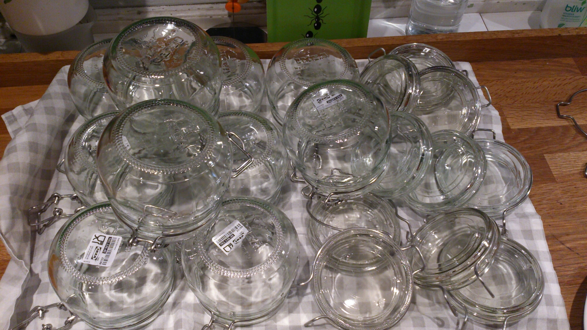 A har skrapat och målat plåttak/balkonggolv över ytterdörren, plockat ner räcke och börjat byta ribbor. Som motivation har vi beställt en kap- och gersåg med bord, då blir det åka av ska ni se! Lagat ordentlig mat hela helgen, inklusive matlådor att frysa in, och som grande finale, MarLan tankeläste och kom med 4,5 kg fina gula plommon som just blivit söndagskvällssyltade efter en racertur till IKEA för att köpa syltburkar, inget lager av burkar hemma som nysvenskar, och mindre än halva priset per burk jämfört med ICA. Nu ska vi spana om det är vi eller månen som blir förmörkade först, lite trötta sjunker vi ner i soffan kl 21:15 efter en massa kladdig disk…