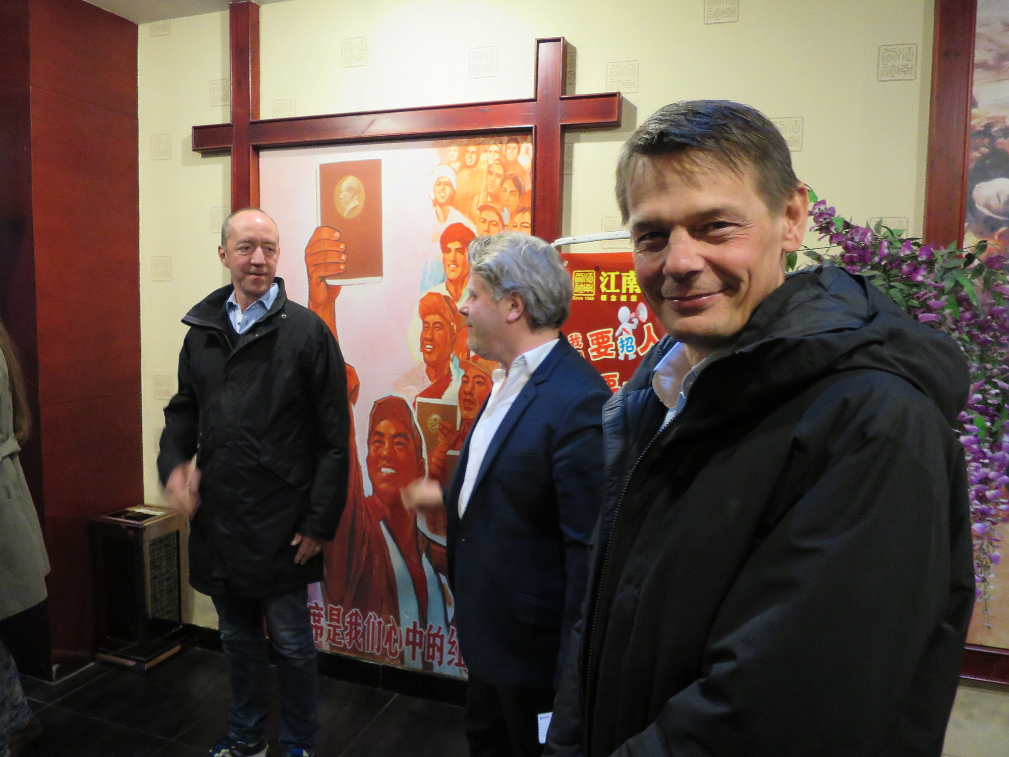 Hm, var ska man gå ut och äta i förorten där vi jobbar? Bara 1,5 miljoner invånare här. Men jo, vi går och äter kinamat! Med kitsch-patriotisk touch på inredningen och serveringspersonalen…