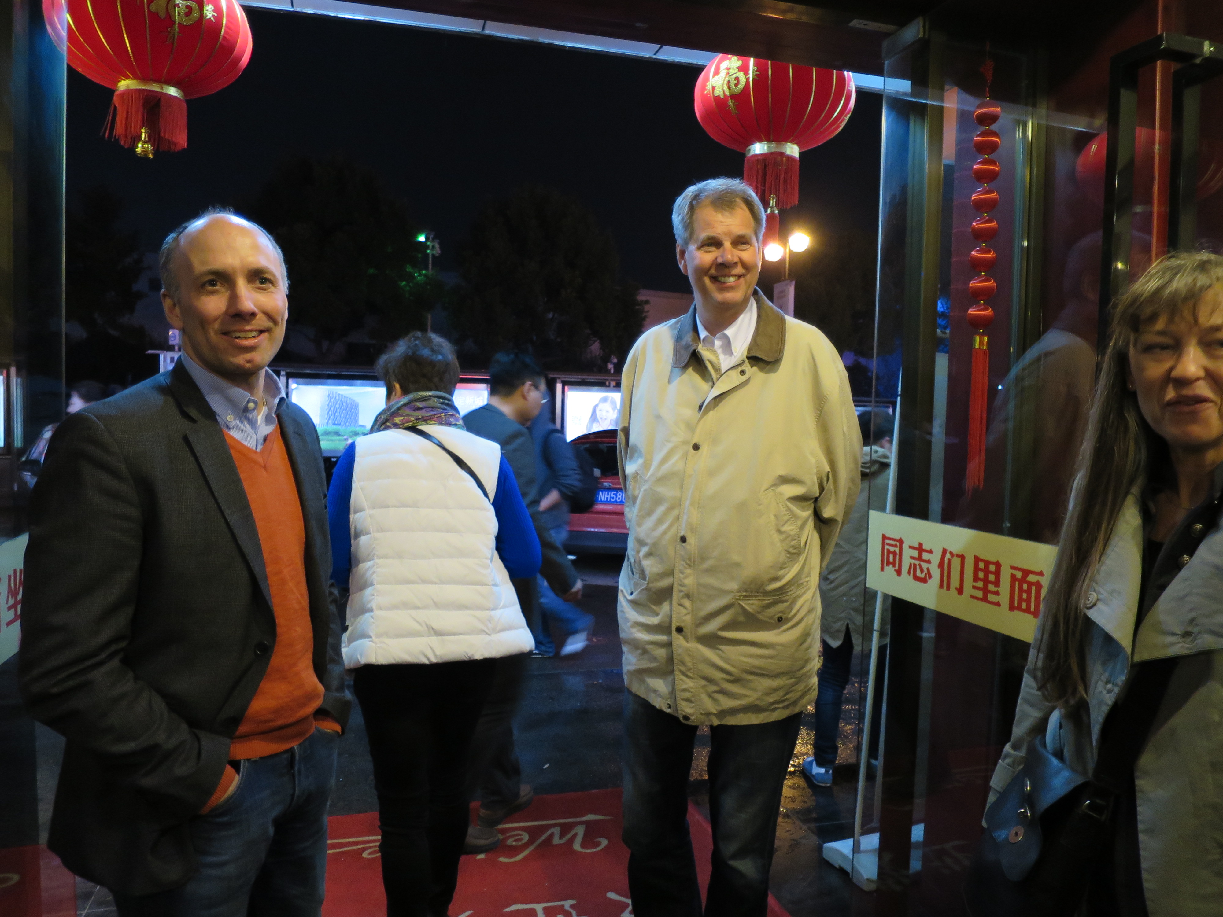 Besök! Chaufför Min Hua tog en sväng till flygplatsen igår, och kom hem med FreTi och Me som ska midsomra i Shanghai. Eftersom varje utlänning på besök i landet måste registreras på polisstationen med uppgifter om var de uppehåller sig, så skulle jag helt enkelt registrera dem. (Bor man på hotell eller hemma hos någon i hus eller lägenhet med ”hotellreception” tar de hand om detta, så de flesta märker aldrig ens att det sker?) Nåväl, registrering, jag hade tur och det var en ganska snabb och effektiv tjej bakom disken, när jag väl fick hennes uppmärksamhet och hon och kollegan slutade ägna sig åt underhållning via en mobil. Sen kom det en polis till strosande, tiddelipommade runt liksom, och så frågade han min polis något. Gissningsvis från vilket land dessa pass var, eftersom hon svarade ”Ruidien” vilket betyder Sverige. Han tog det ena passet mycket försiktigt, tittade, grubblade, tittade på mig, tittade i passet. Då sa jag:
