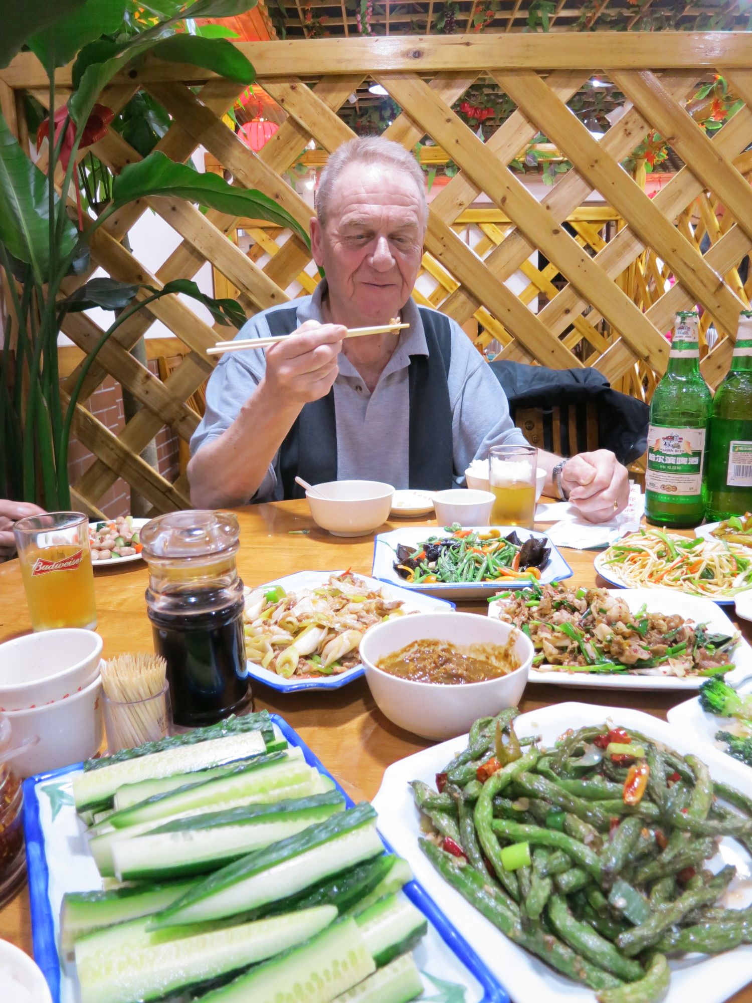 Det är lite misstänkt att Pappa K hade tjuvtränat med pinnarna innan? Han hävdar att han aldrig ens hade provat… hm! Naturbegåvning isåfall, för han lyckades få i sig hela sin middag med två smala spröt. Mamma K fuskade lite, vi hade med bestick…