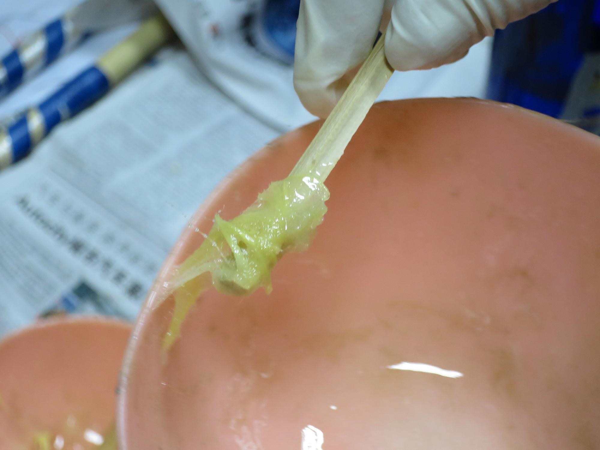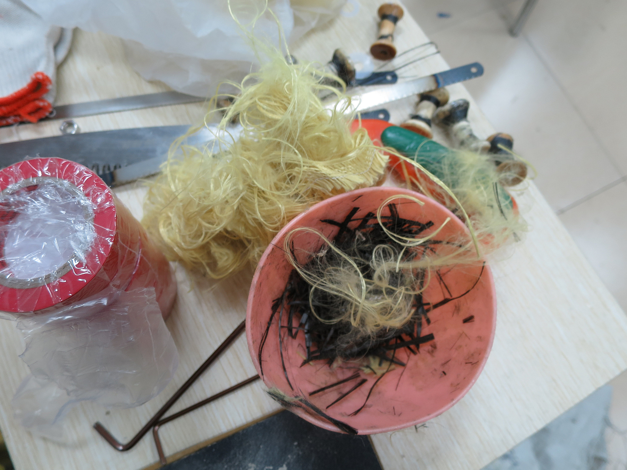 Sigi blandar andra proportioner än gårdagens snabbhärdande, idag ska vi härda längsammare och först och främst hålla glasfiberduksremsor och kolfibertråden blöt tills varje knut är färdiglindad.