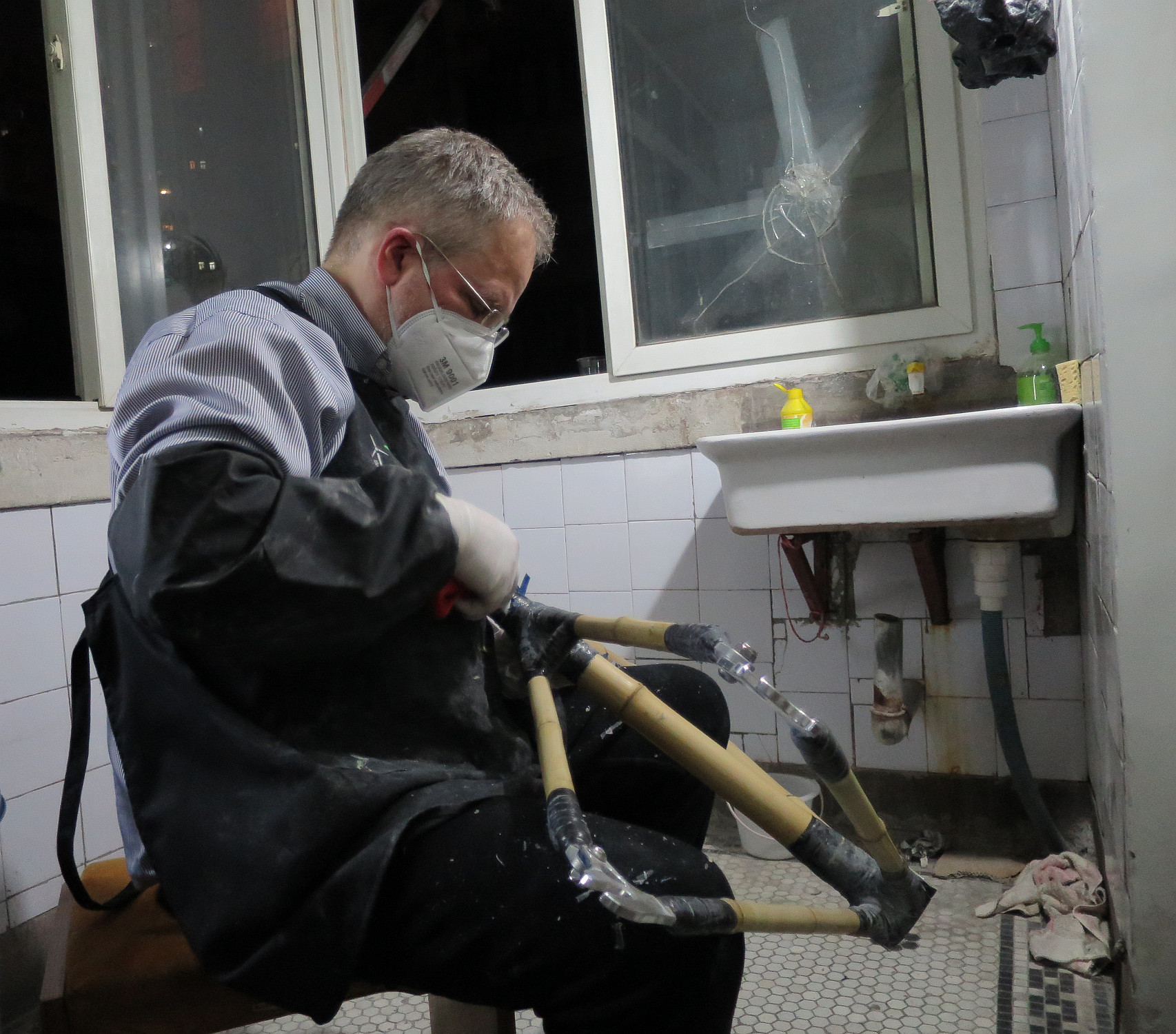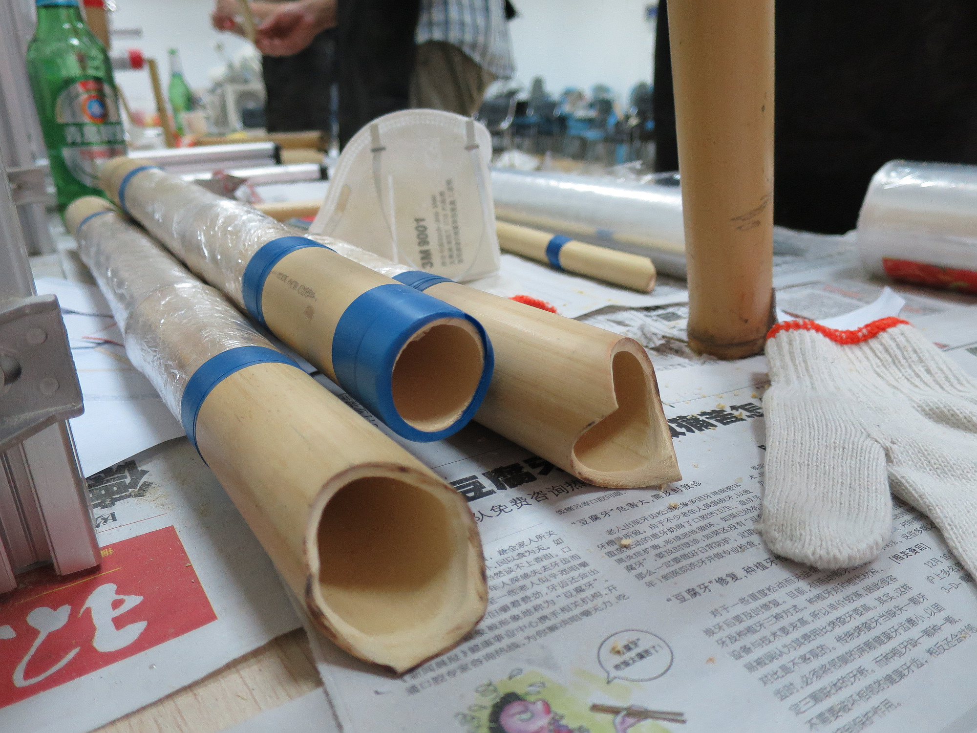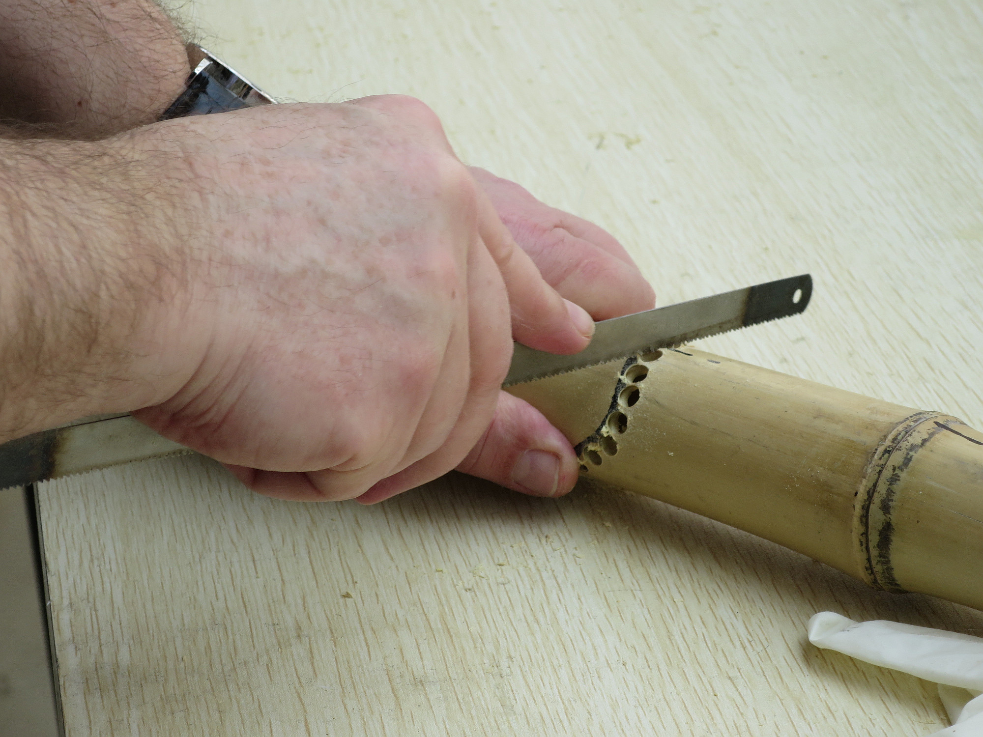 … och slipandet! Lite puts på ytan när alla bambusar är klara.