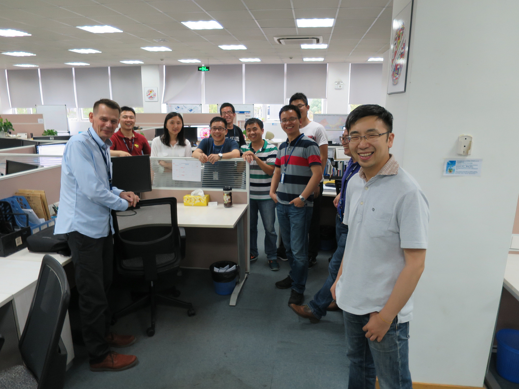 Alltså, sista morgonen i SH, precis när vi skulle kånka ut väskorna till bilen som såklart står och väntar i kulissen med en som alltid förberedd och alert MinHua… Så dyker A:s närmsta kollega upp ur buskaget också, kl 06:20 på morgonen, och han bor inte bara runt hörnet direkt…