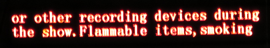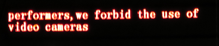 Meh. Detta med tillägget att en person gick runt i publiken med en skylt där det verkligen uttryckligen stod fotoförbud också… jag lyder. Det gjorde ju inte alla i publiken om man säger så… Nåväl, var och en efter eget samvete. Hitta bilder här istället: