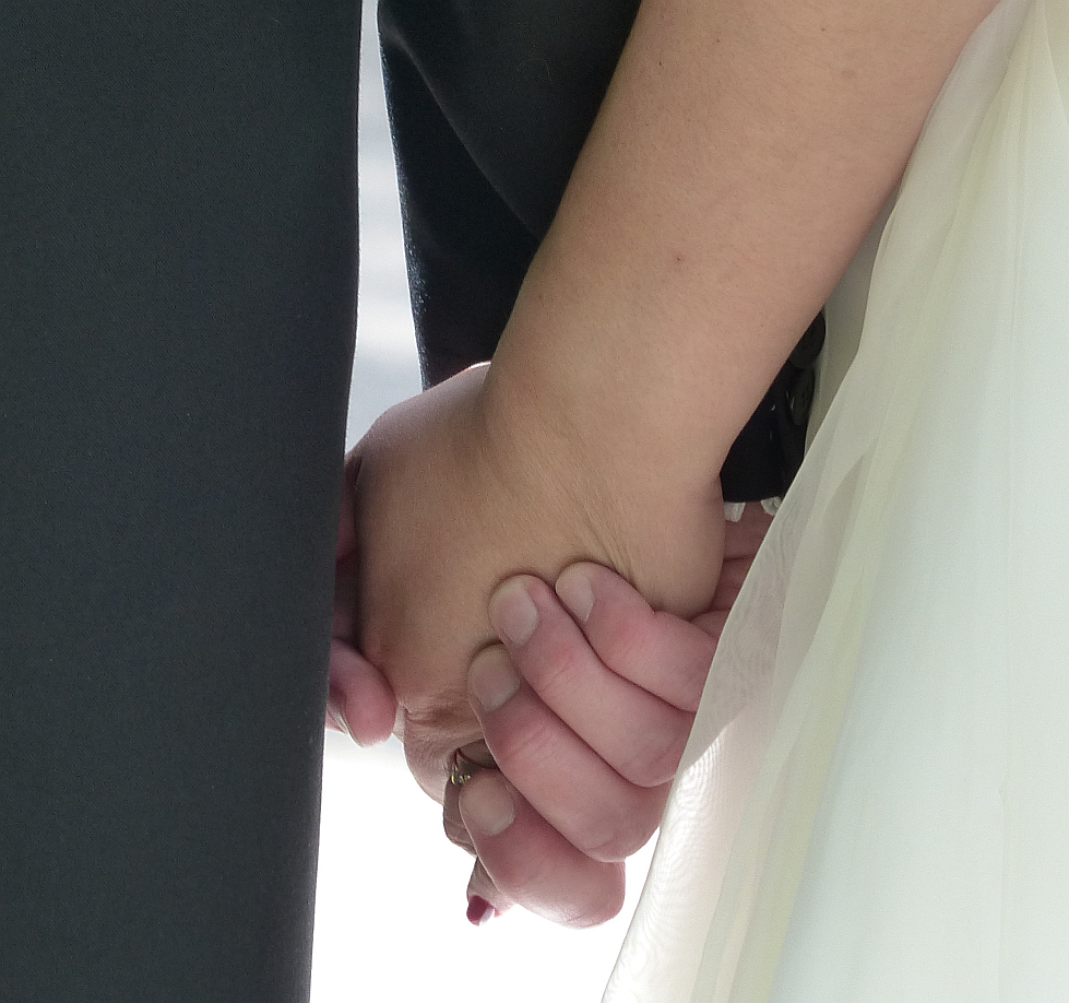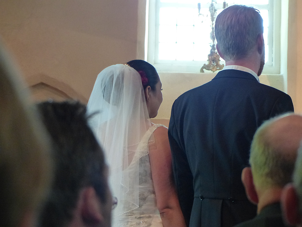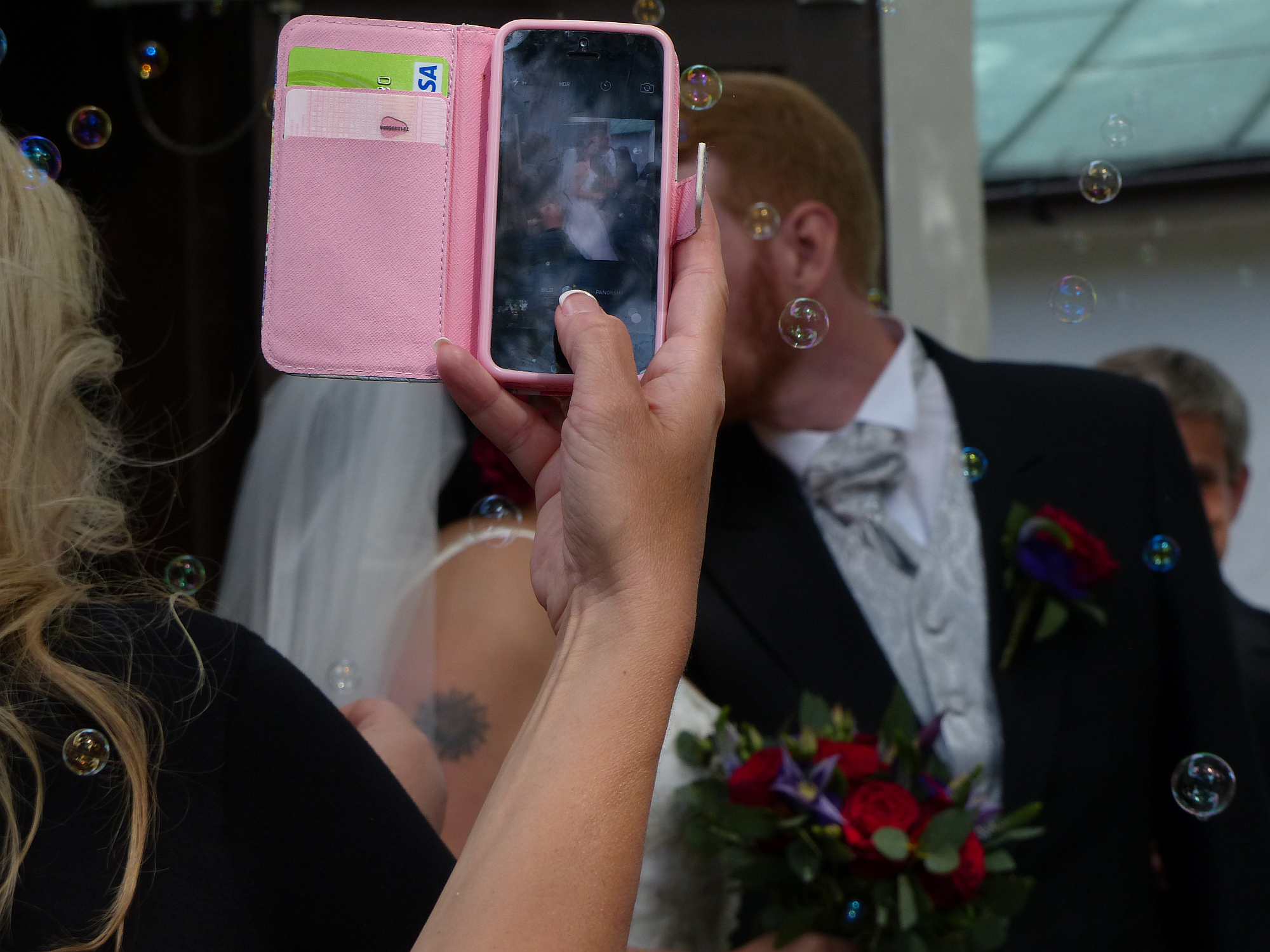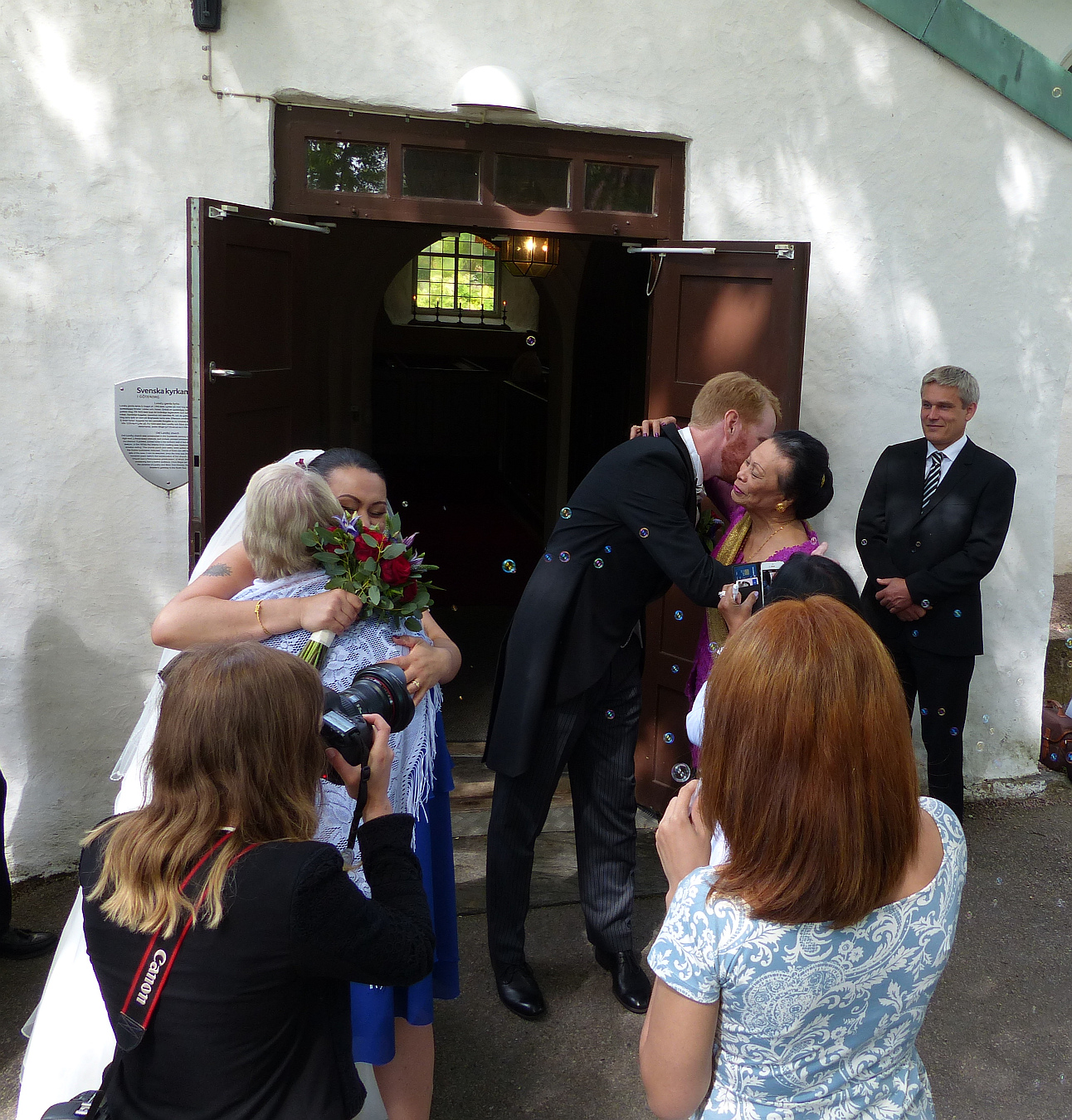 På kyrkbacken. Väntan igen, den riktiga bröllopsfotograferingen pågår fortfarande inne i kyrkan. Mammorna längtar!
