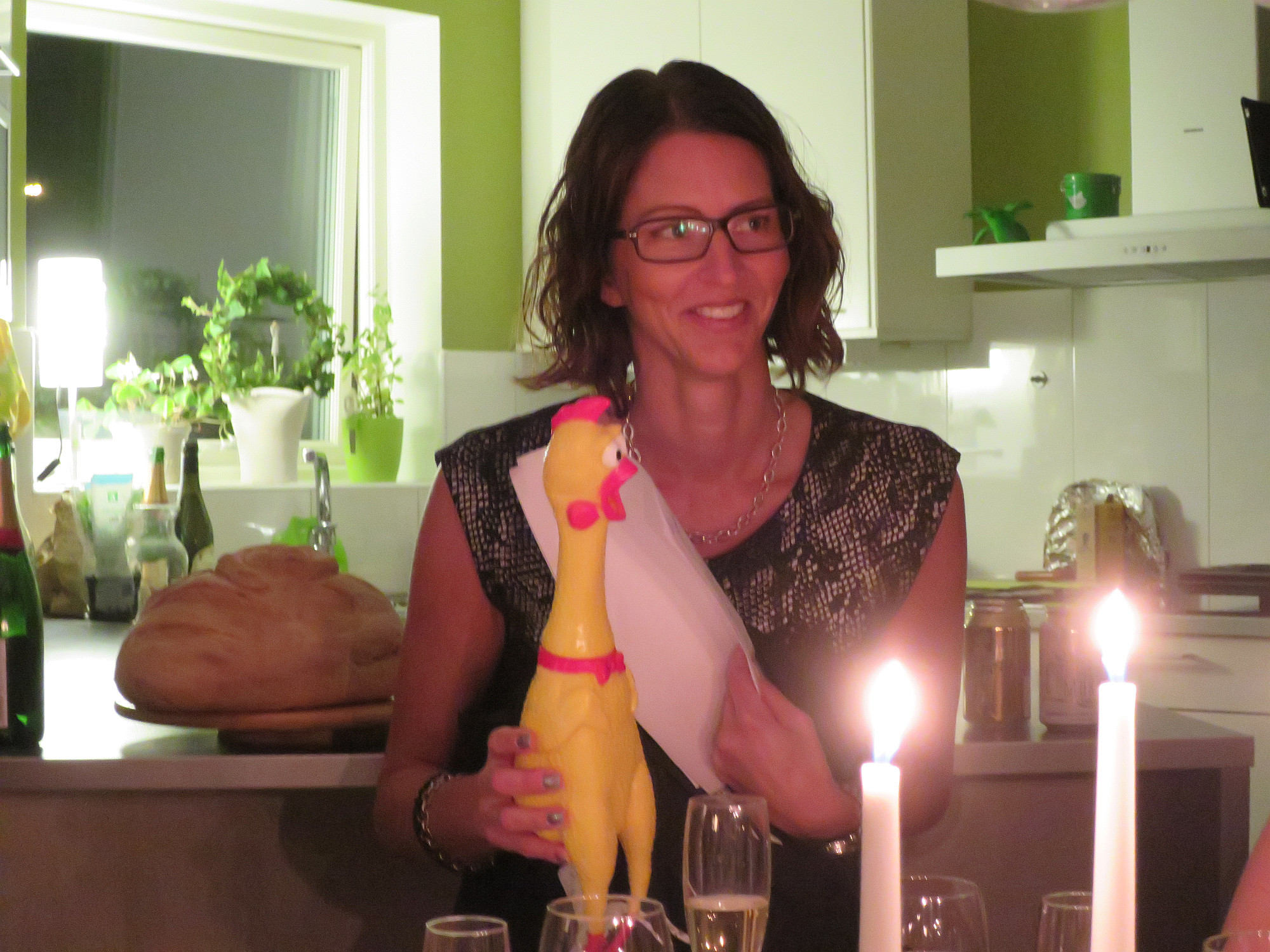 A fick stanna hemma i ensamhet och äta korv köpt till nedsatt pris pga nära bäst-före-datum (detta vill han melodramatiskt poängtera), jag fick gå på galamiddag! Så olika kan det bli. Men min VIP-biljett gällde bara för tjejer!