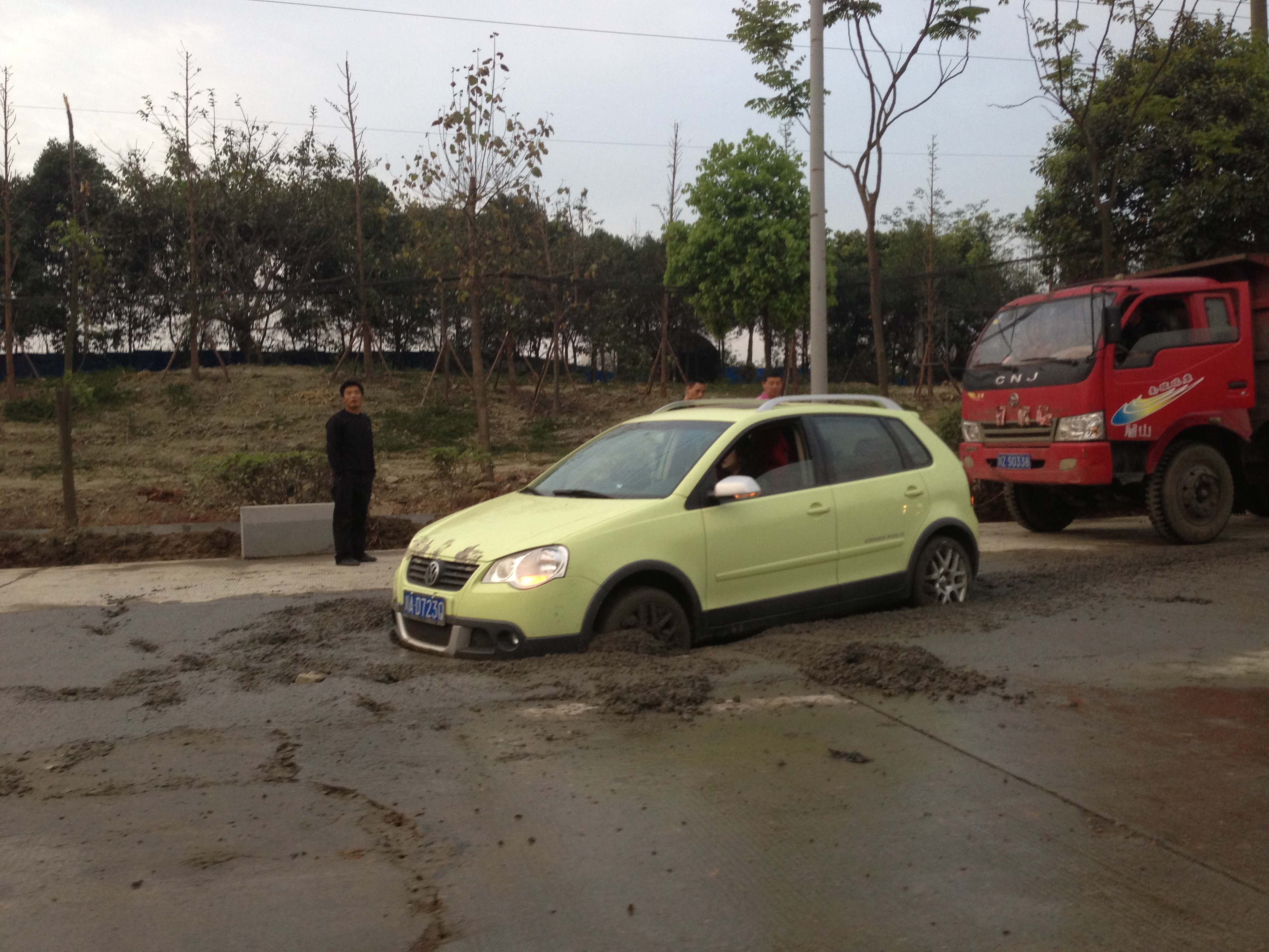 Någon som försökt ta en genväg, troligen på väg att bli en dyr senväg, sågs av en kollega i Chengdu på väg till jobbet imorse.