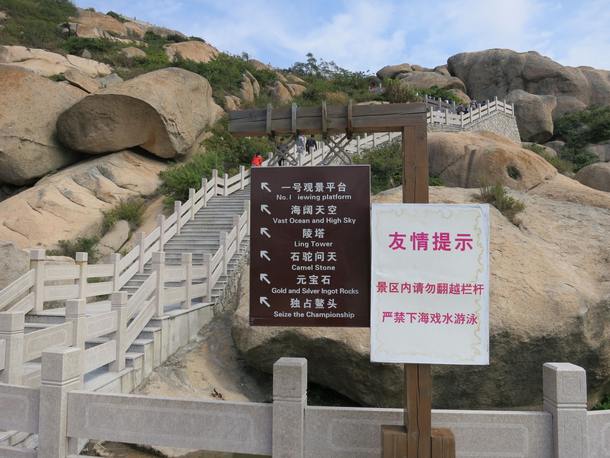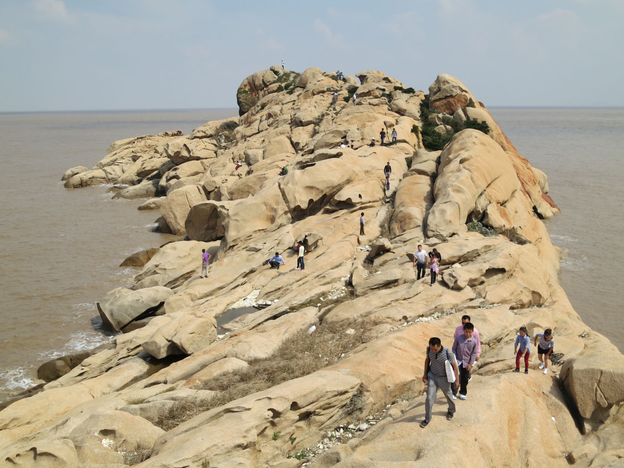 På ön där bron slutar, är SH:s djuphamn, och ett utflykts-/utsiktsmål. Man vandrar på snyggt klinkrad gång med ledstänger, ganska brant och backigt, trängs med många andra semesterlediga kineser. Men helt ok som en dagstur.