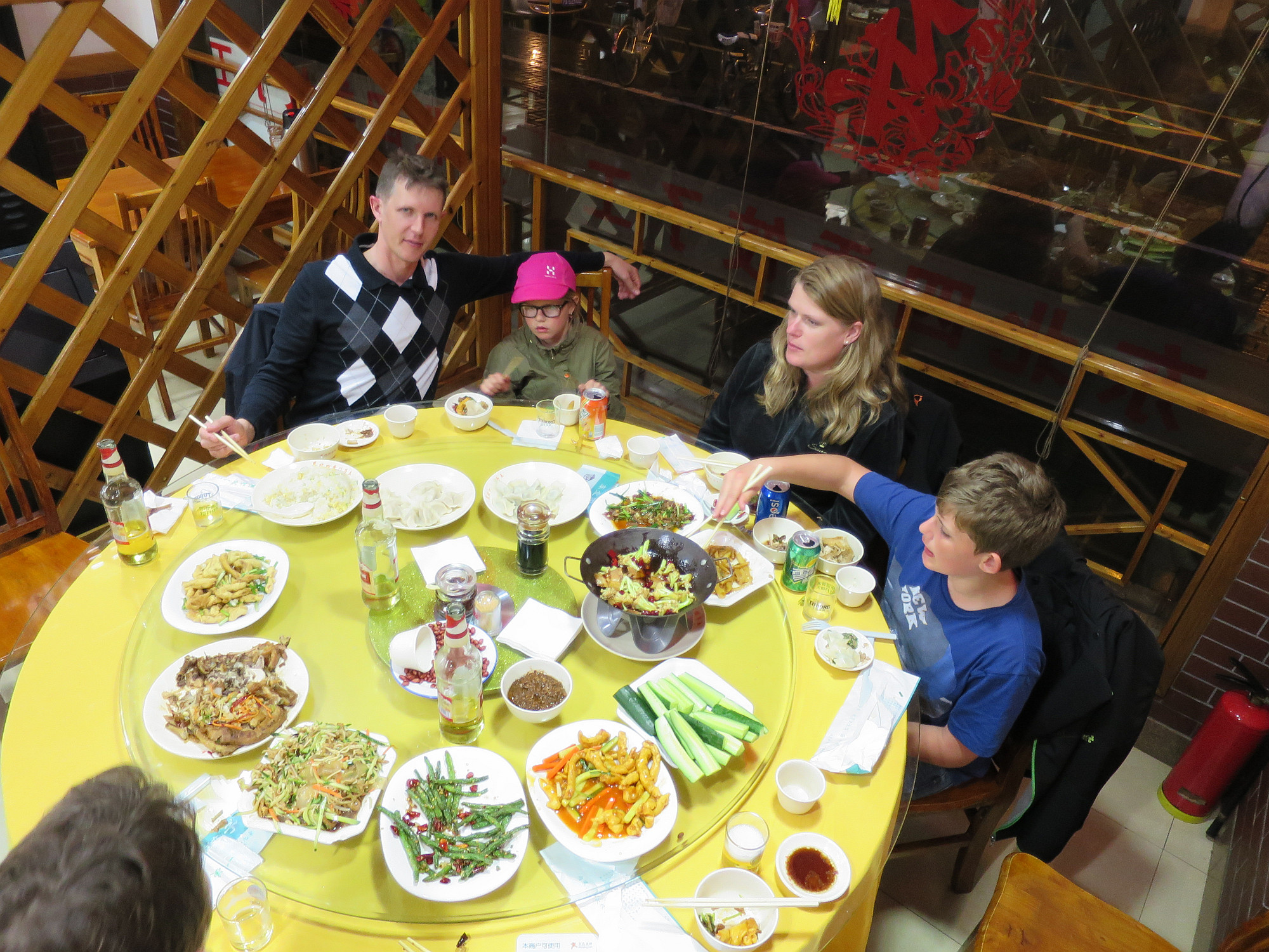 När vi kom hem efter arbetsveckan hittade vi familjen Ry! Kul! Vi går ut hårt med anpassning till Kina och äter riktig Kina-mat på en gång!