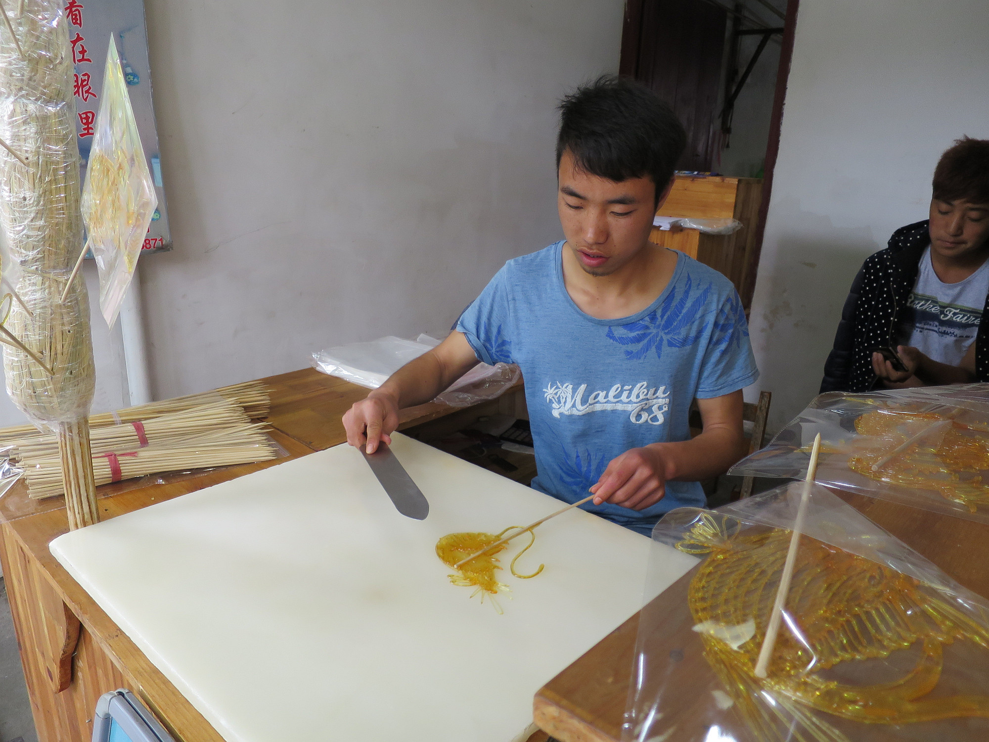 Saker att äta. Kanske. Vi valde istället att köpa kakor av killen med en gul rosett på huvudet, som direkt passade på att ropa ut ”utlänningarna köper mina kakor, kom och köp ni med” på kinesiska, enligt vår medföljande tolk…